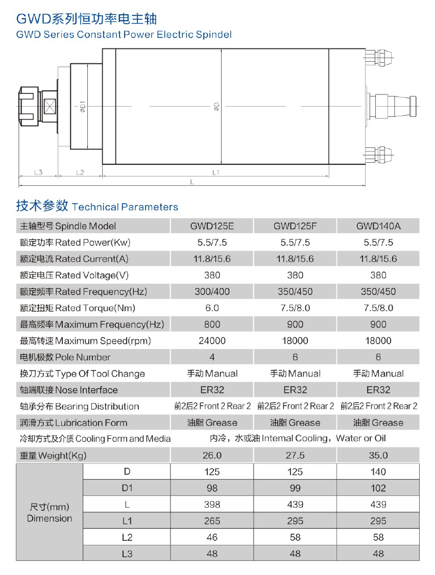 Шпиндель по металлу GWD125F 7.5kw 8nm