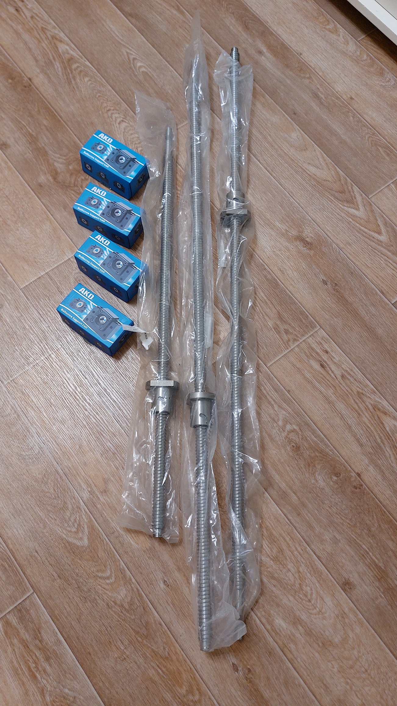 Получил свой заказ (ШВП TBI с гайками SFU и фланцевые держатели ШВП AKD C5 FK и FF), очень доволен - заказывал у уважаемого MGG. По качеству меня устраивает, замеры на соосность не могу сделать - нет ни призм ни микрометра в СПБ, но по посадке подшипников скажу, что садятся четко с легким усилием (точили под посадку js6). Гайка крутиться без закусываний, но самопроизвольно не свинчивается (есть преднатяг). На концах резьбы ШВП цветов побежалости нет, но видно что они не блестят по сравнению с основной частью резьбы ШВП. По основной резьбе покоцаной резьбы нет, на краях есть пару небольших коцаний, но это уже не рабочая часть резьбы. Каждая ШВП упакована в пакет, смазана маслом, в гайке ШВП тавотницы нет, но отверстие забито густой смазкой, все ШВП упакованы в большую коробку с 3 толстыми поролоновыми (жесткий пластиковый полорон, как технику упаковывают) вставками, чтобы ШВП но бились друг об друга.