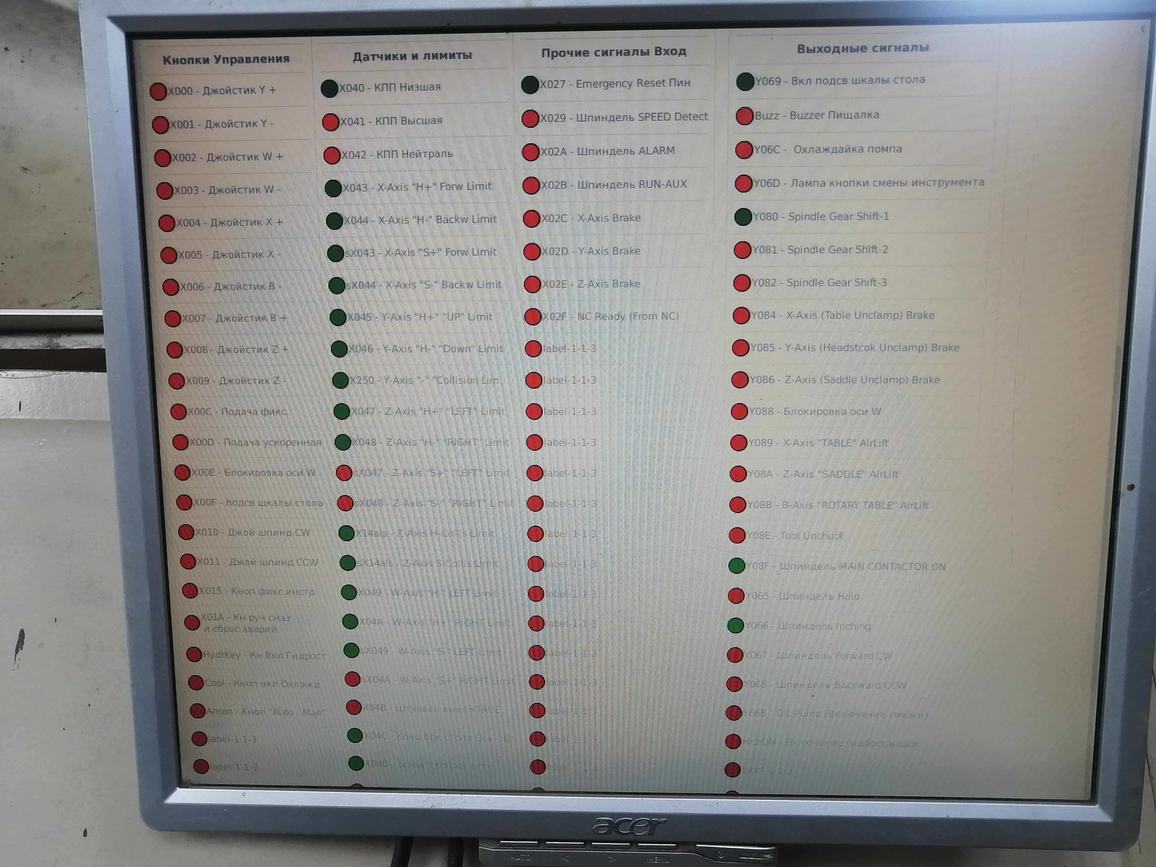 Потихоньку вырисовываются панельки. Первая это будет показометр DRO + "лампочки сигнальные". А вот второй это диагностическая панель, которая после отладки и настройки станка будет висеть в шкафу электроавтоматики. Очень сложно без этой панельки отлаживаться и диагностировать систему. Все сигналы в неё не влезли, придется перерисовать и шрифты уменьшить. Но удобство отладки с ней я уже ощутил.