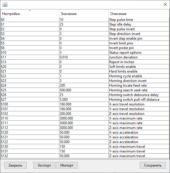 GRBL настройки: http://blogandbux.blogspot.com/2018/07/ ... revod.html