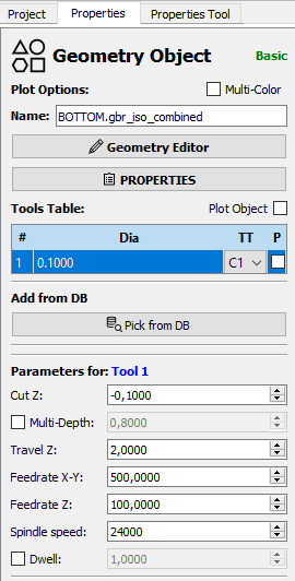 13Dmitriy писал(а): А как во FlatCAM задаётся глубина фрезерования меди? Нашёл только через толщину фрезы