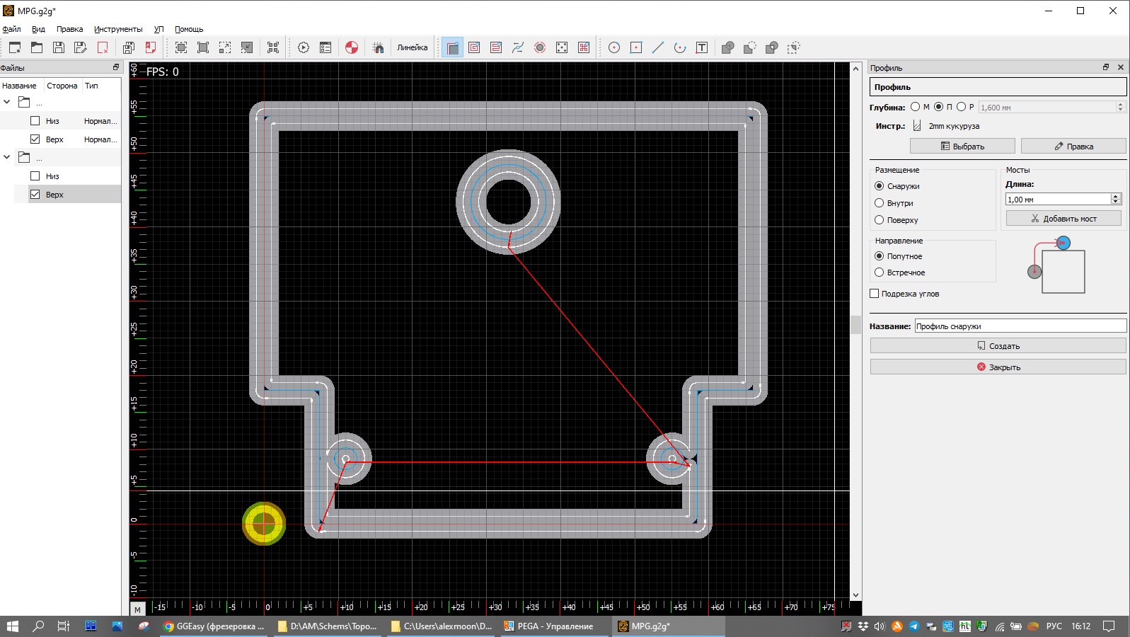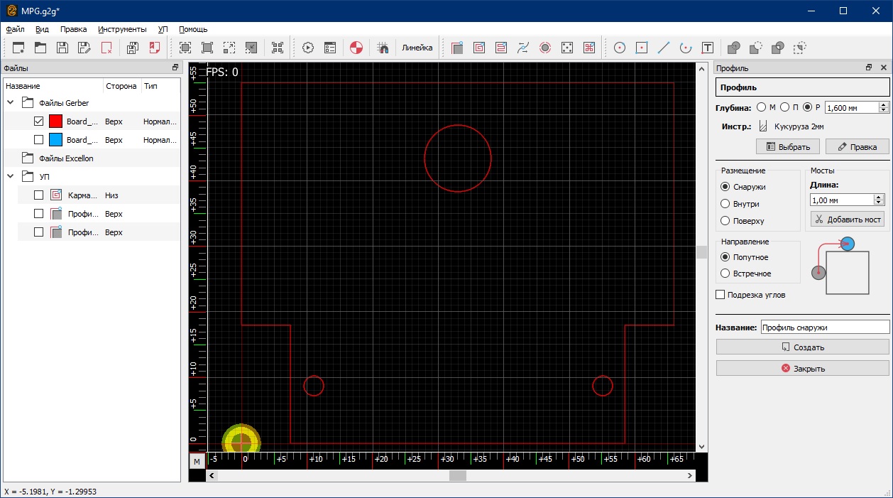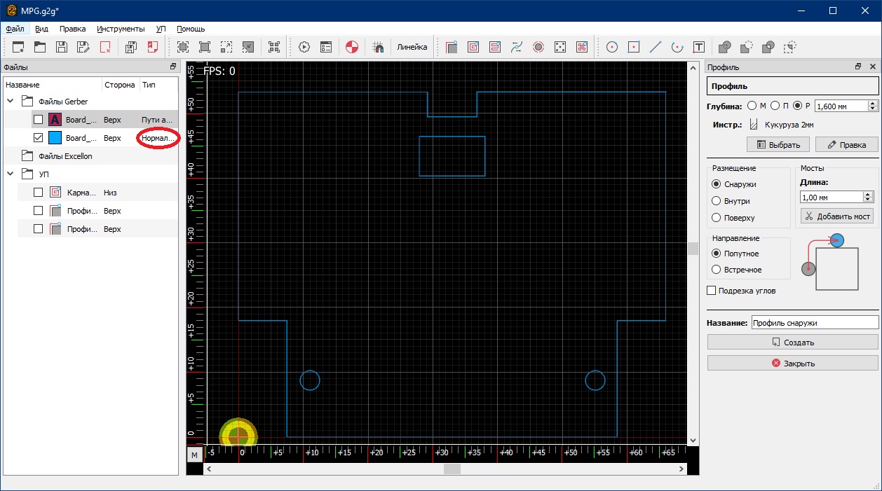 Версия платы №2, Выбрать всё =&gt; Профиль снаружи.  Сгенерирована траектория с внутренней и с внешней стороны контура. (3850 просмотров) <a class='original' href='./download/file.php?id=208427&mode=view' target=_blank>Загрузить оригинал (276.4 КБ)</a>