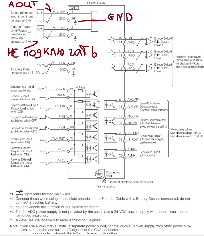 C проблемой концевиков разобрался в Pn50a XXX0X надо было исправить на 1, иначе все изменения в Pn50a и Pn50b не работают. Jog-ом из сервопака мотор крутится, но на подачу напряжения не реагирует.