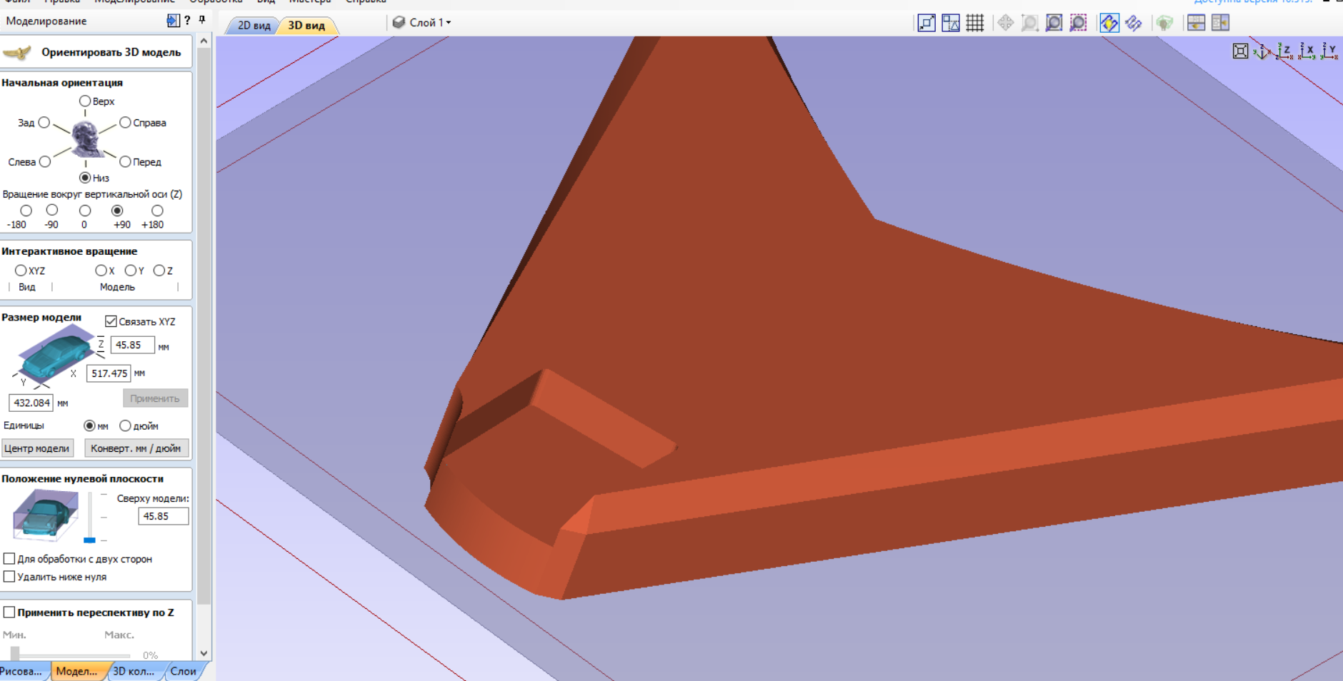 Фрезеровка кармана по модели тоже получается со ступеньками, при этом остальные плоскости модели фрезеруются нормально.