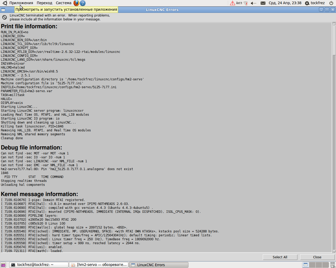 Machine configuration directory is '/home/tockfrez/linuxcnc/configs/hm2-servo'