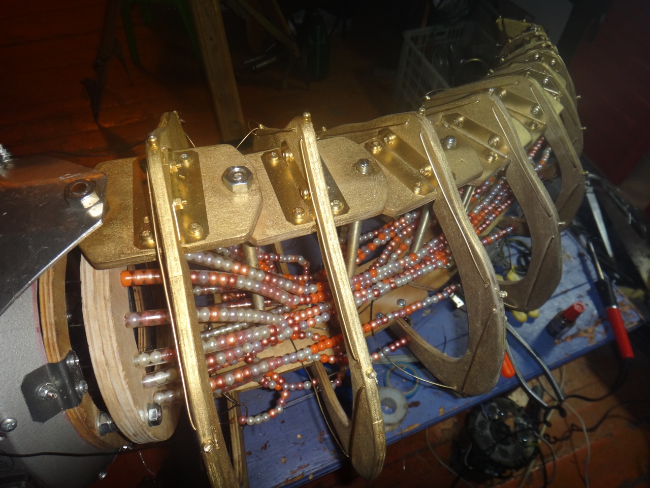Сроки предоставления скульптуры на конкурс истекали и срочно нужно было отправлять видео макета. По мере разработки макета, были, конечно же, технологические компромиссы. По-другому успеть было не возможно. Это конечно же влияло на качество узлов и их эстетику. При должном освещении показывать её было стыдно. Последние дела были закончены под утро даты сдачи и надо было ехать незамедлительно делать видео и оправлять. Требовалось продемонстрировать суть идеи, движение, концепцию, чтобы судьи могли представить её в парке и длиной 6-12 метров.