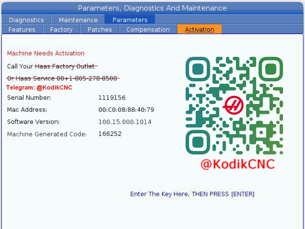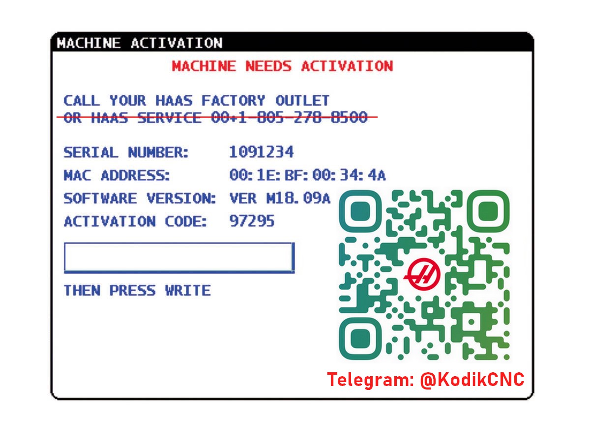 Активация станка после изменения версии софта и других параметров требующих нового кода.
