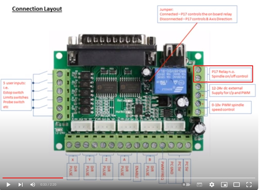 Рассказываю медленно ,у кого шпиндель на 220 вольт фрезер или постоянник со щётками ,для них поставили реле и перемычку ! Для тех у кого частотник или 5 осей сделали прямой выход на клемму 17 и разрешили снять перемычку ,что б реле не счёлкало понапрасну !