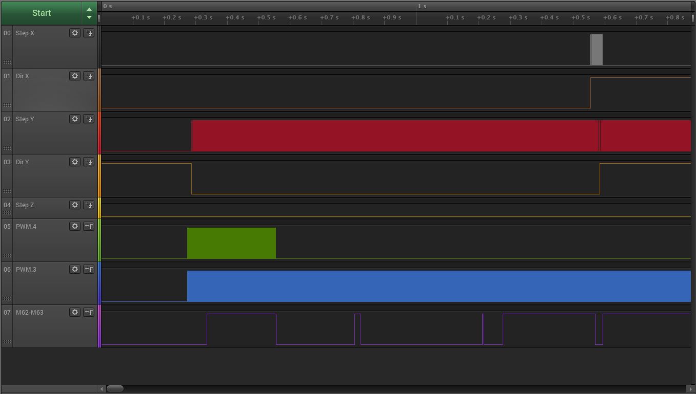 Стартует он одновременно с сигналом PWM.3, невзирая на отсутствие сигнала M62/63. Так не должно быть по логике HAL-конфигурации.