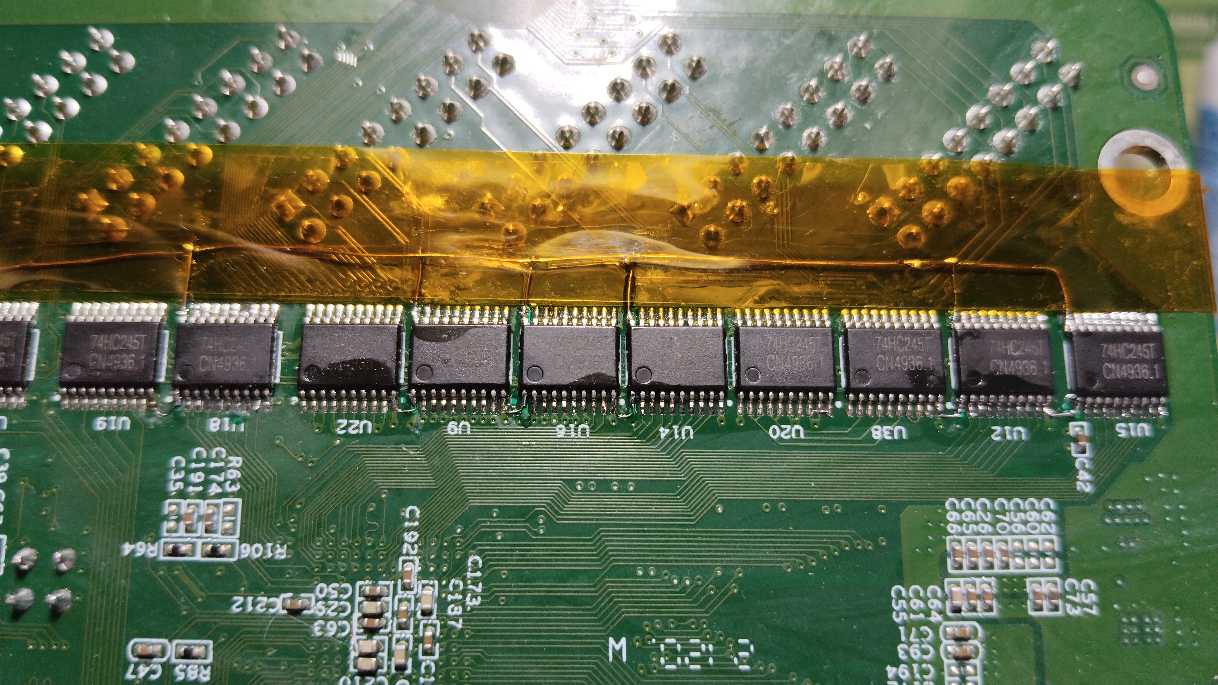 1. Использовать штатные 74HC245T, но для этого нужно поднять 20ю ногу (питание +5В) завести туда +3.3В с платы и 1ю ногу - посадить её на землю. Тем самым изменим направление работы буфера.