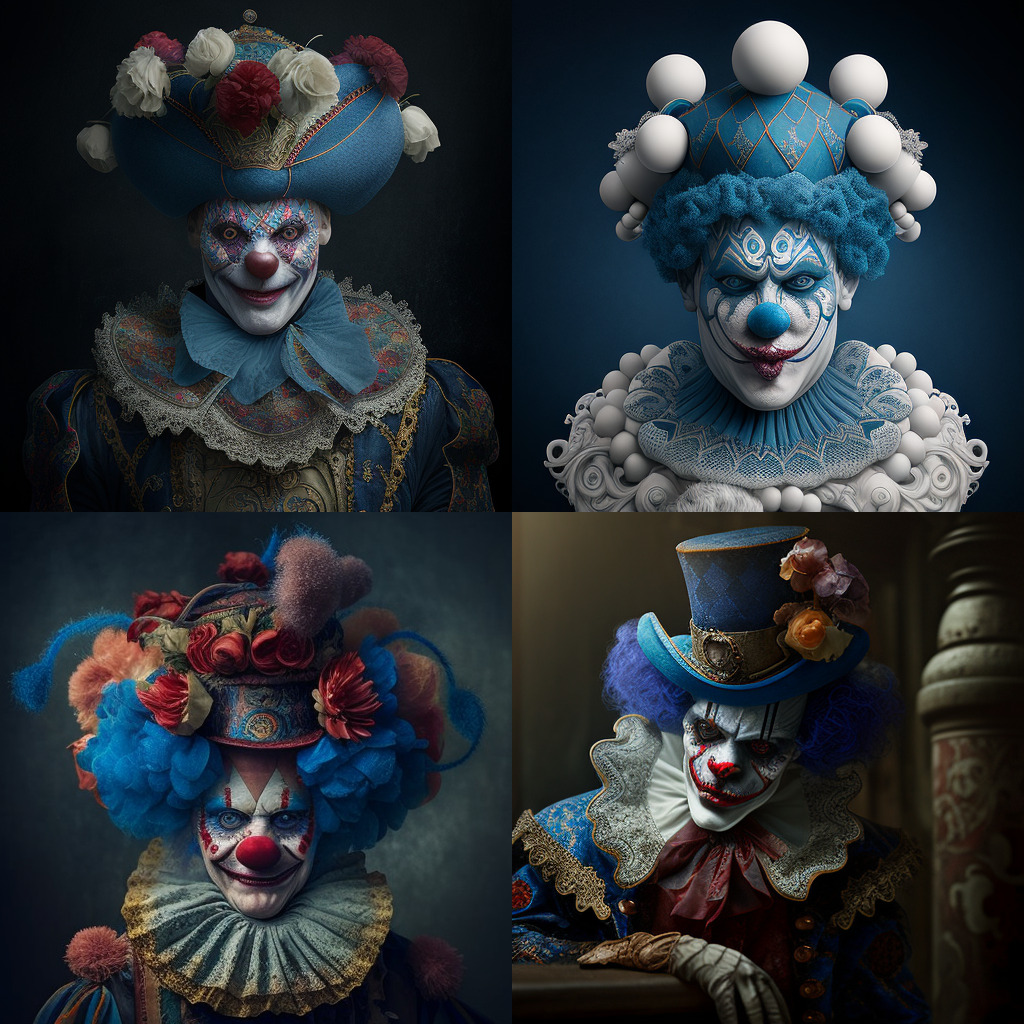 Промпт простейший a clown gzhel style Кажется делал в миджорни.