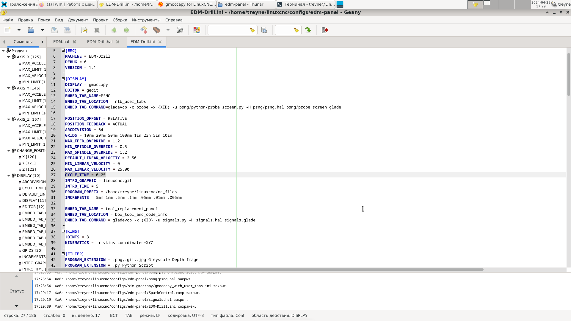 Всем привет ребятушки, нашёл эту панельку для центроискателя. Просто пушка, в ней есть всё что нужно, установил по инструкции, подключил, прямо из коробки не работает. Ругается на строчку в файле "/home/treyne/linuxcnc/configs/edm-panel/psng/python/probe_screen.py", line 415, in error_poll