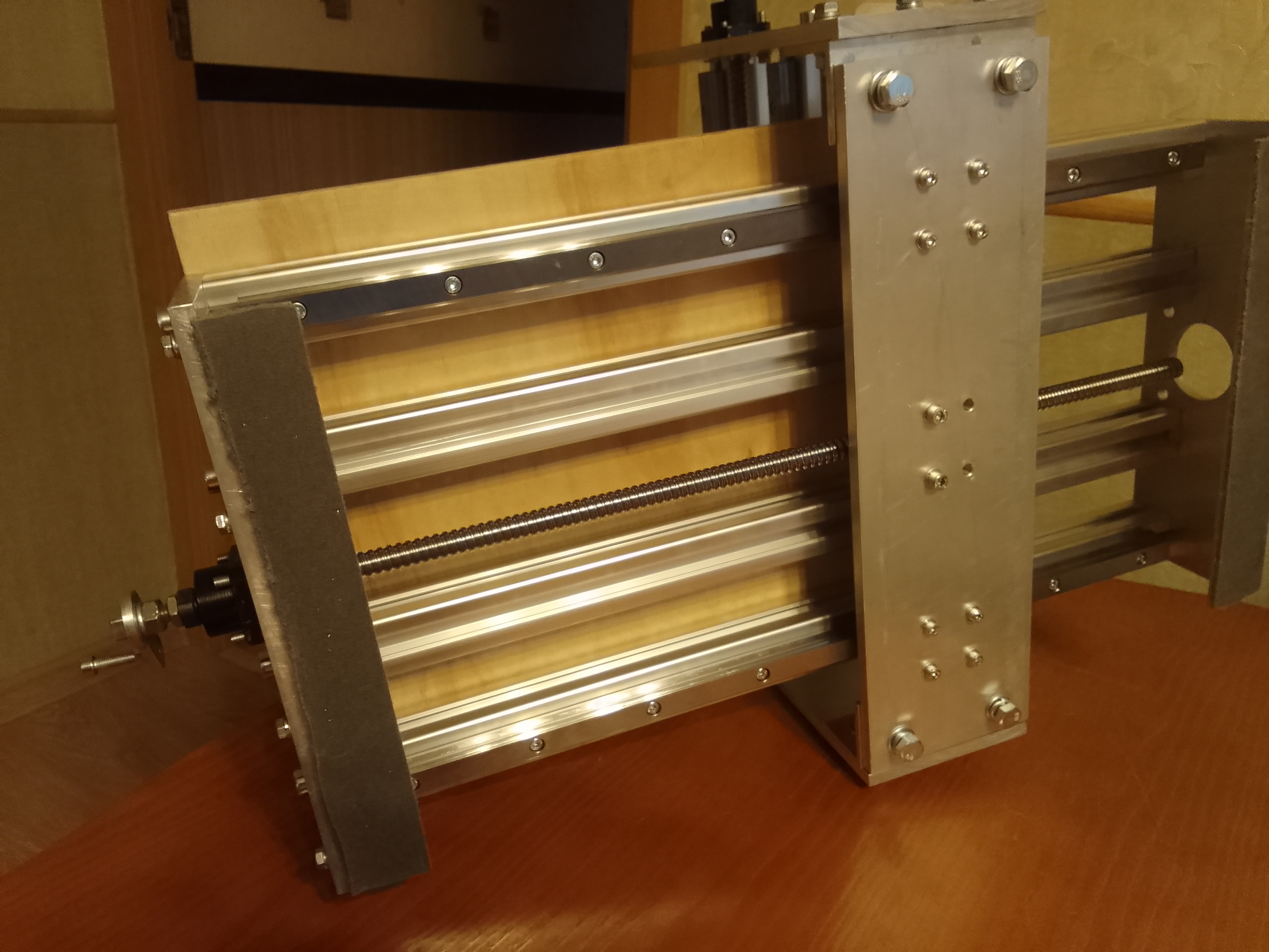 Продам КИТ настольного станка ЧПУ – внешние размеры без ШД 500х380мм, высота 430мм, рабочее поле 250х350х100мм, вес примерно 14-15кг. На всех осях стоят ШВП1204, оси Х, У и Z выполнены на 15-х рельсах, крепежные отверстия под ШД типа НЕМА23. Крепление для шпинделя диаметром 65мм (1.5квт). Станок предназначен для обработки дерева и пластмассы, а также возможна эпизодическая обработка непрочных металлов (алюминий и т.д.).