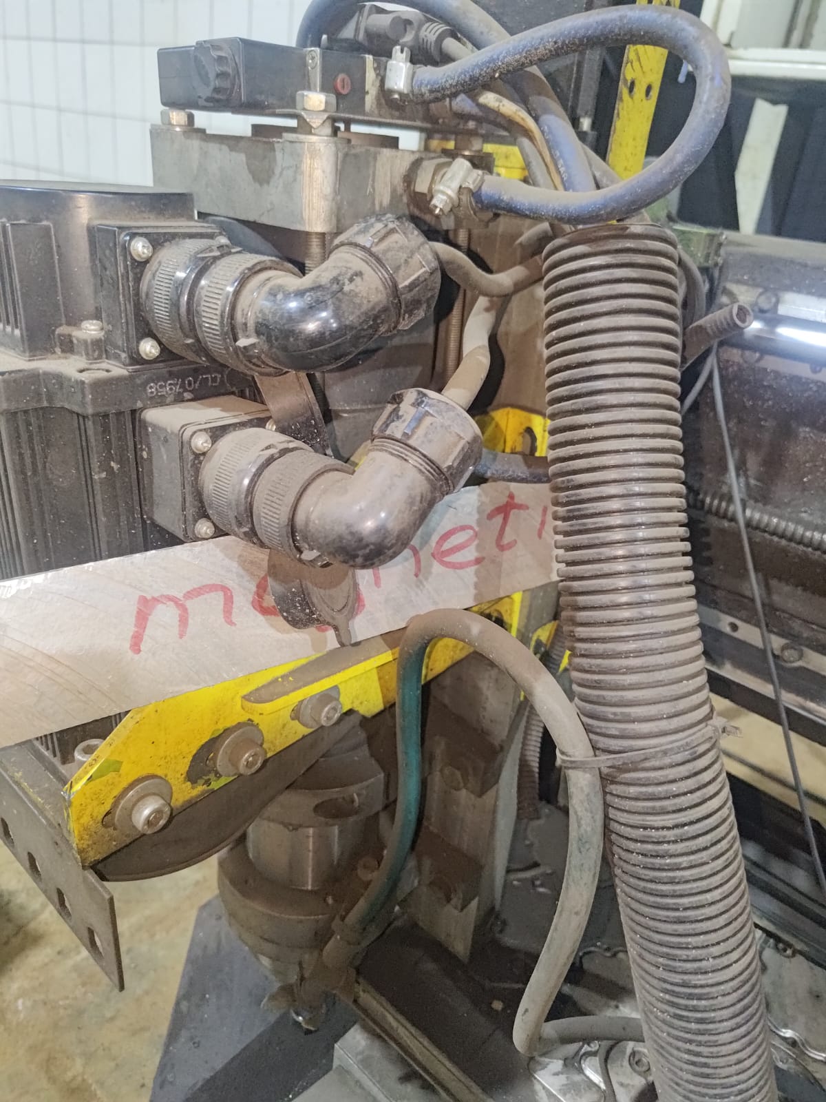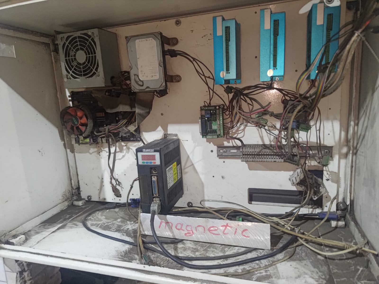 При внутрицеховом перемещении злодеи оторвали шкаф управления. Кое-какие провода оторваны и требуют распайки.