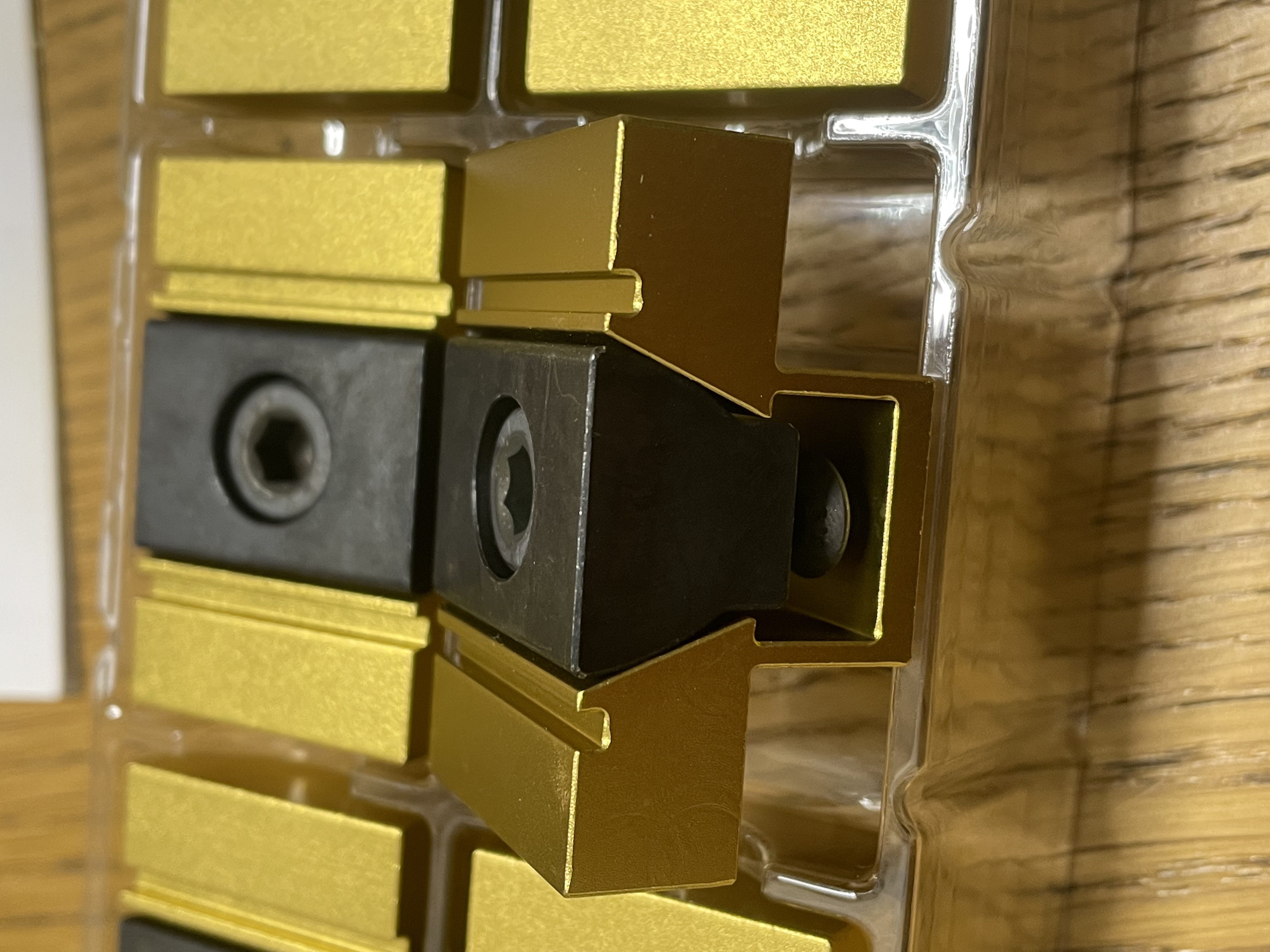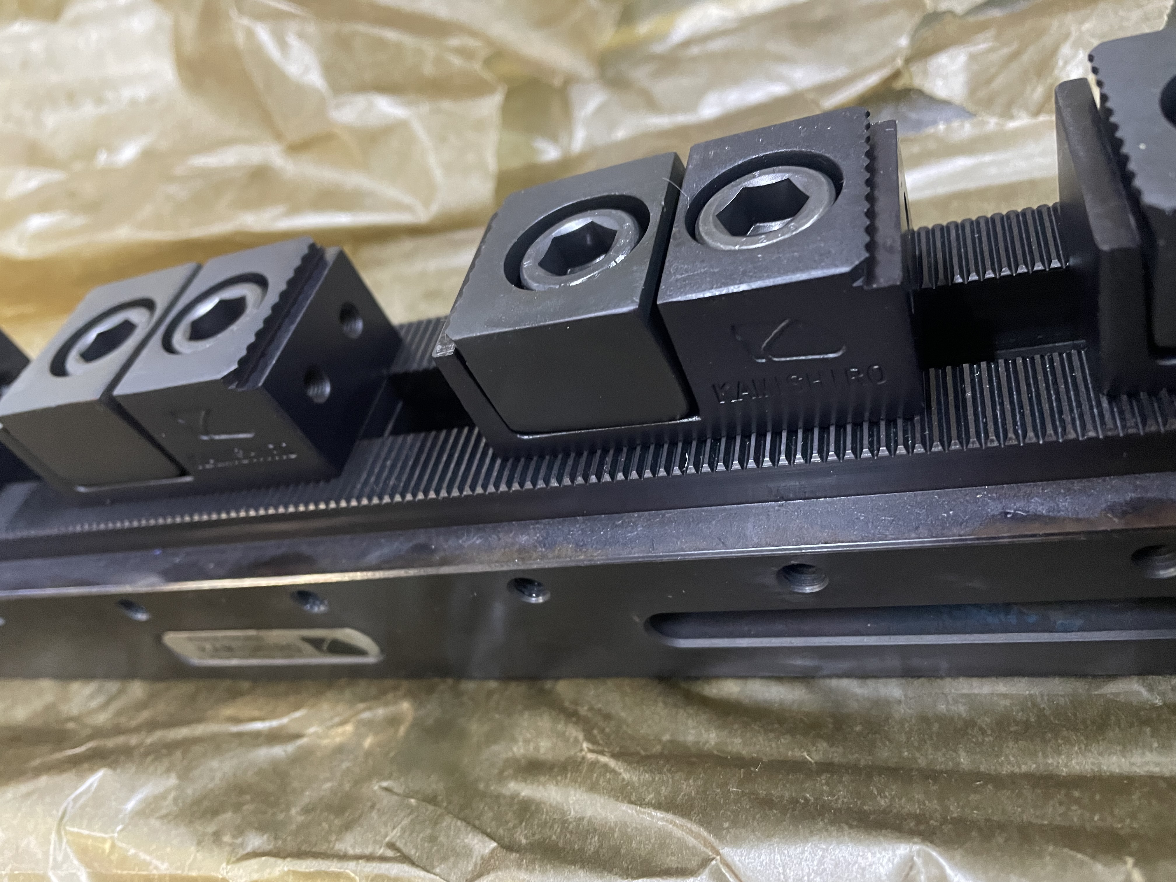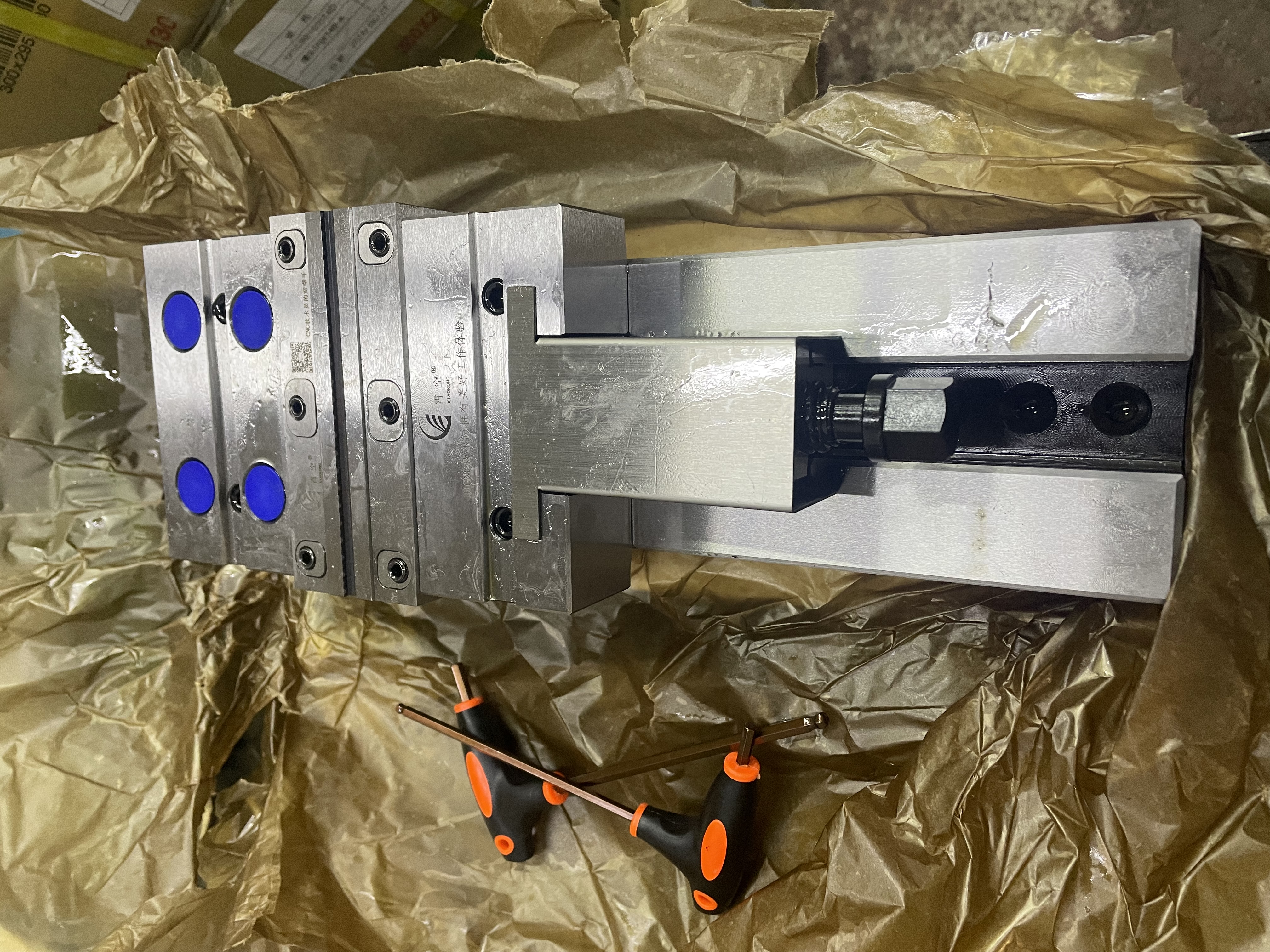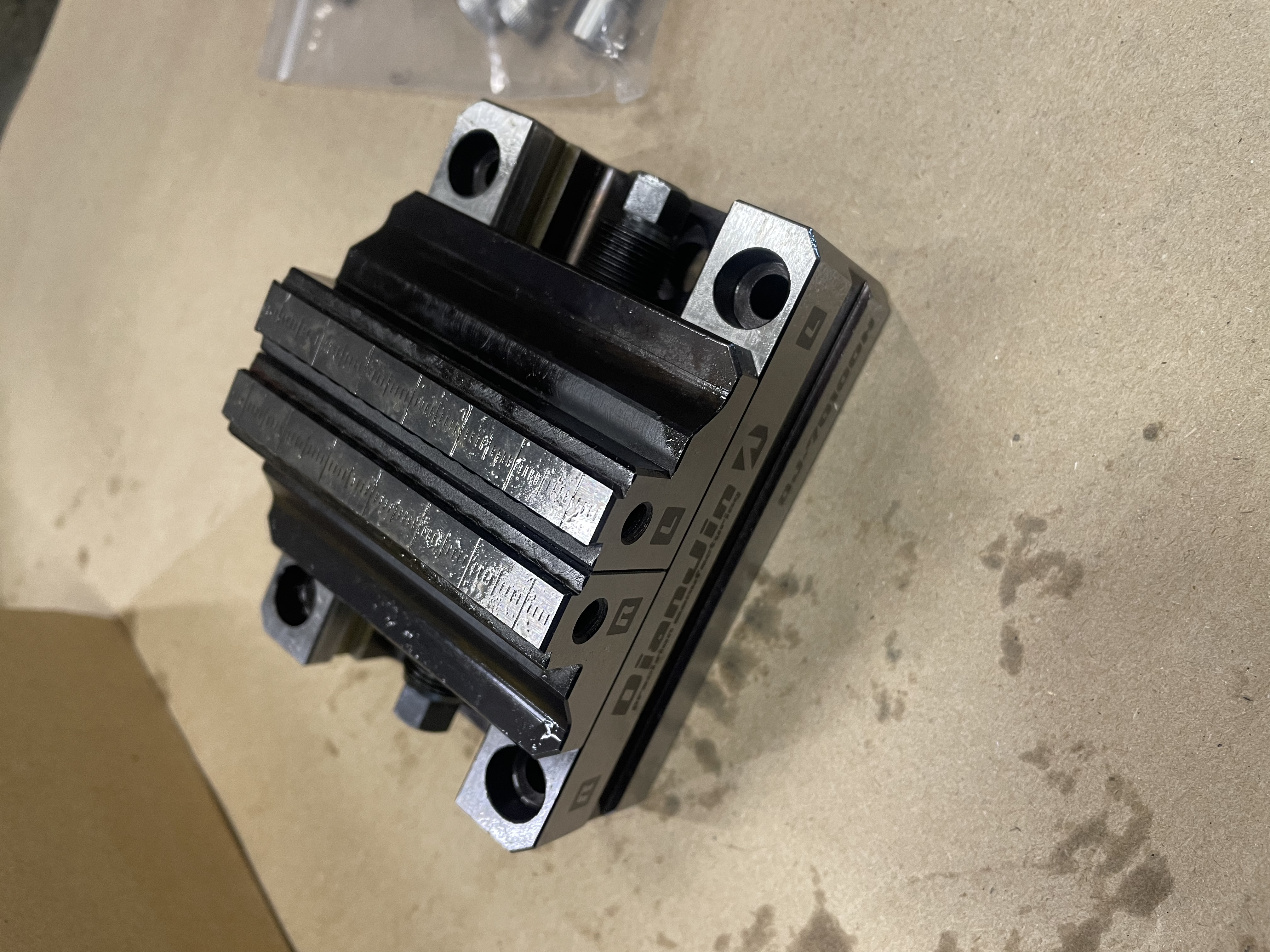 В комплекте прижимные сухари, шестигранные ключи для губок, шпонки для позиционирования в Т-пазах, упор, динамометрический ключ и пара алюминиевых кастомных губок.
