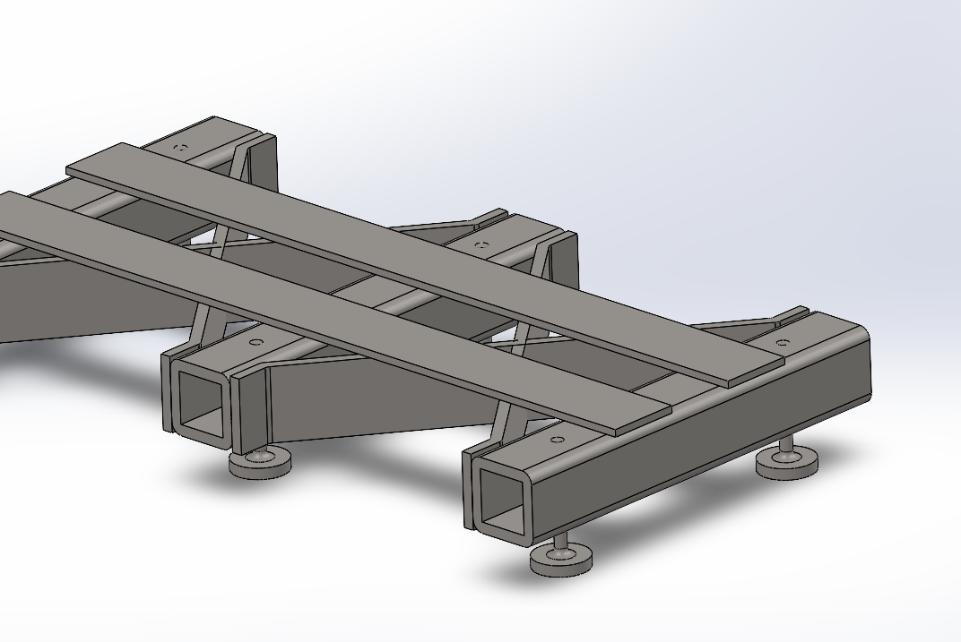 Поэтому - либо железобетон, причем много, тонны. Хороший вариант использовать готовую пустотную ж\б плиту перекрытия 9-ти метровую, уложенную на три-четыре фундаментных блока. Направляющие - самые настоящие ж\д рельсы. Либо брать за основу отрезок магистральной трубы с толстой стенкой - от трубопровода. Труба потому, что на единицу веса конструкции при таком отношении длины к поперечному размеру 70/4=17,5, труба обеспечивает максимум крутильной жесткости, которая у Вас наиболее критична будет. Любые сборные ферменные конструкции при равной жесткости будут на порядок тяжелее трубы.
