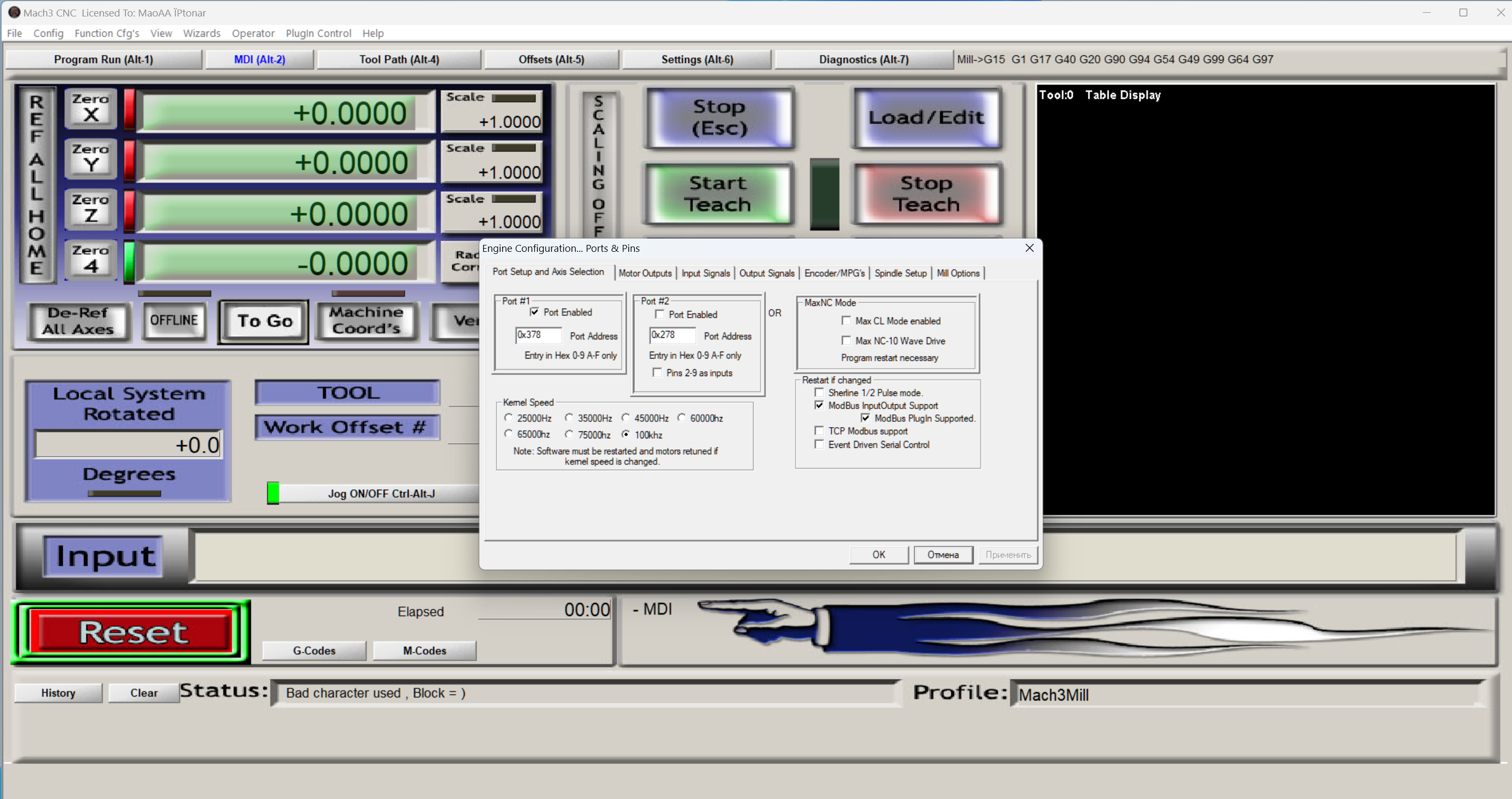 Set UserDRO (1002, p) '- передать в пользовательскую переменную 1002 значение Р. Будем считать, что 1002 это переменная скорости, значение которой по ModBus передается в адрес 137.