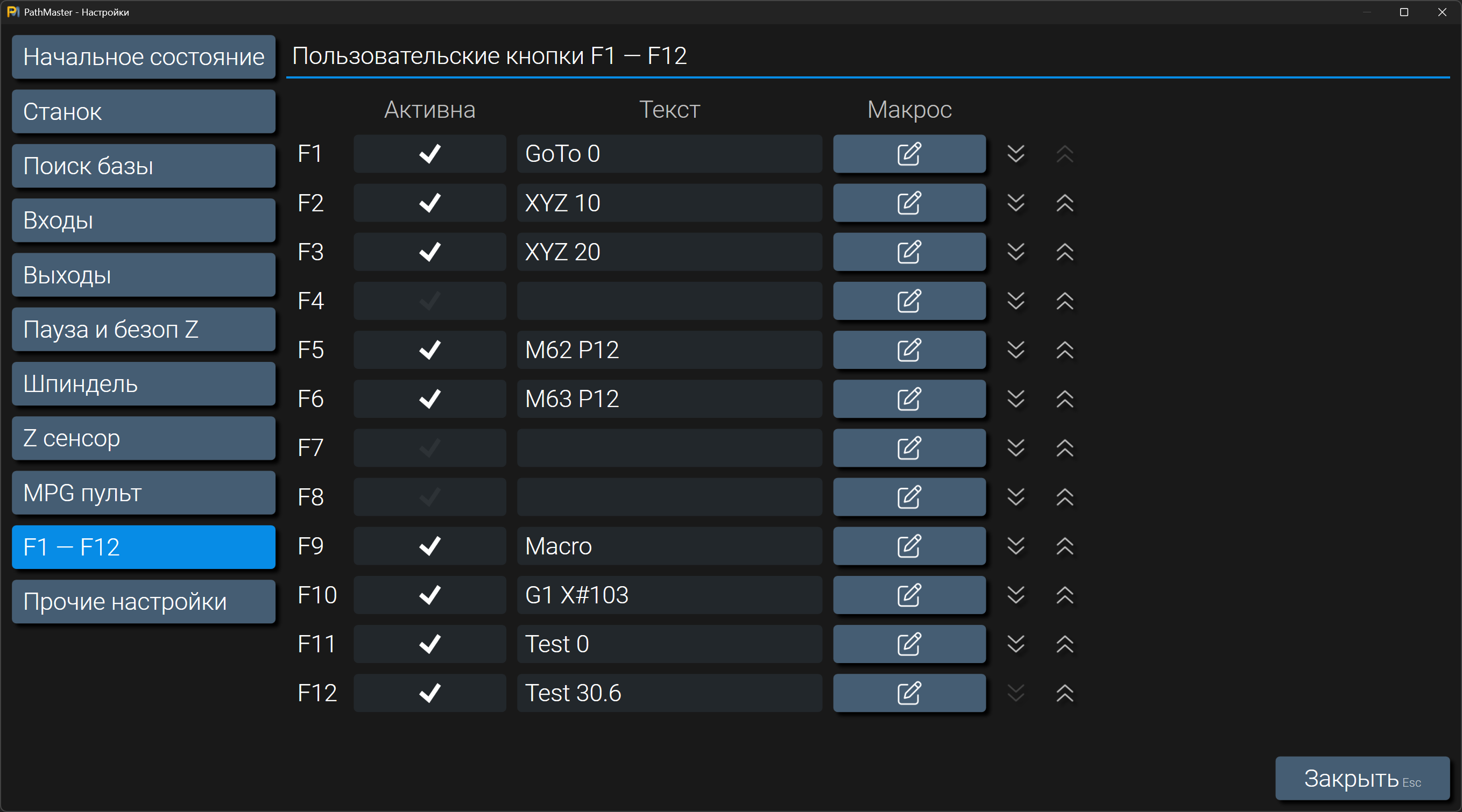 Сделал настройку пользовательских кнопок User F1 — F12.