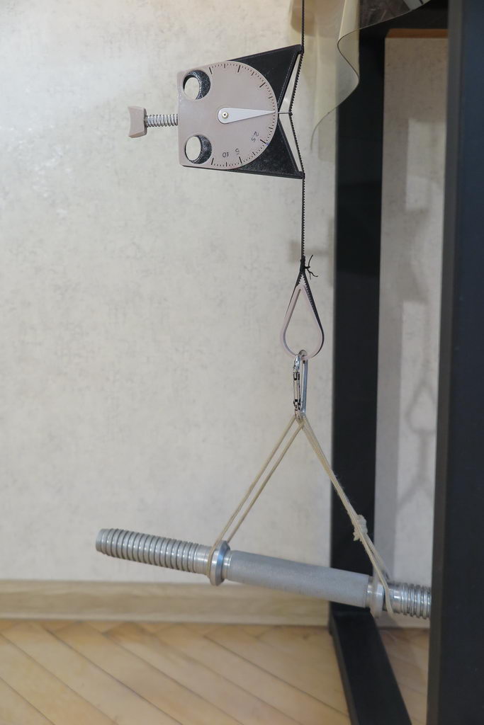 силу натяжения примерно натягиваю на ремне стола, потом с этой приблуды регулирую ремень головы на такоеже