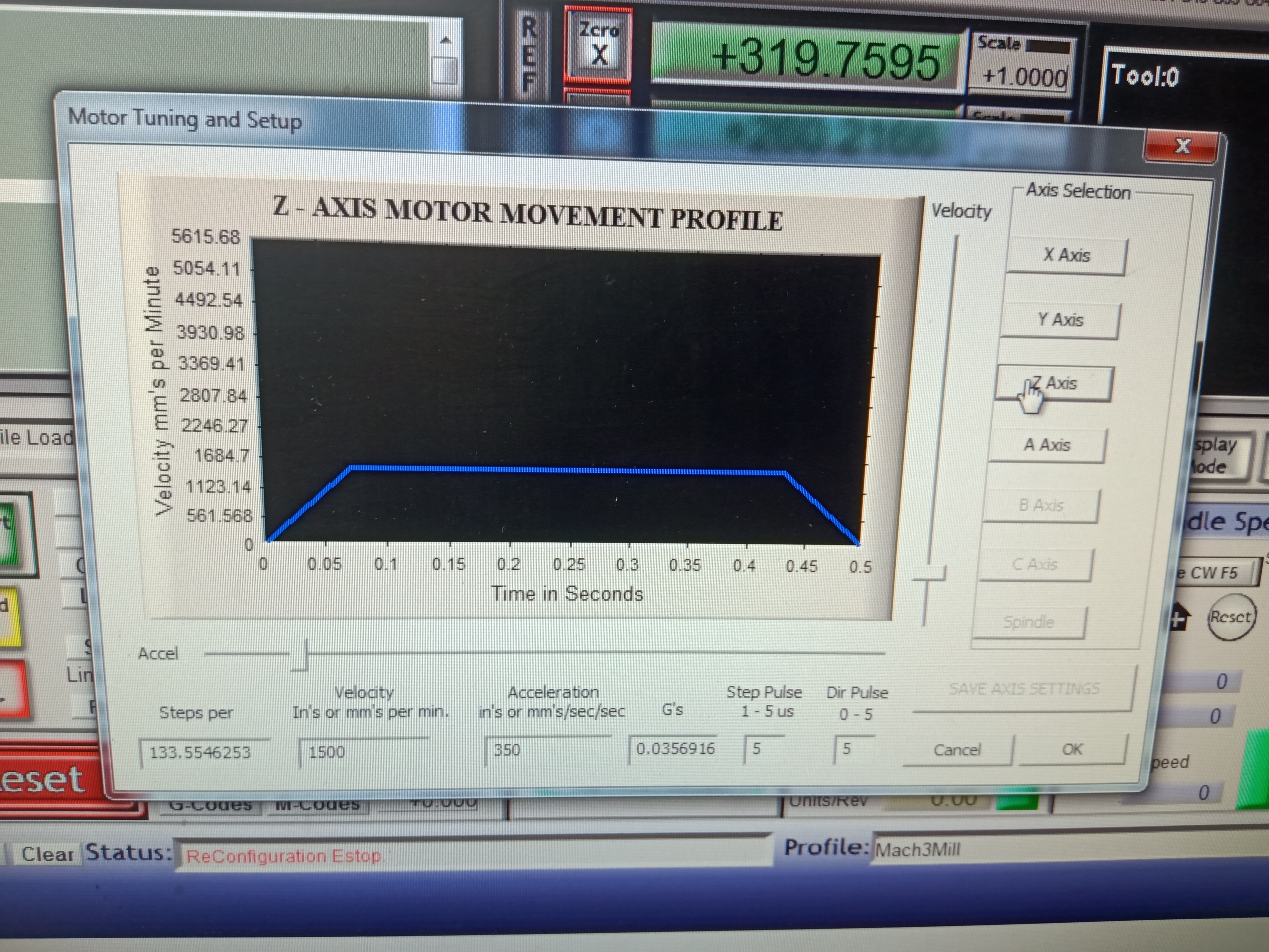 Настройки станка я менял, перепробовал кучу комбинаций. Скорость ставил от 500 до 2000. Ускорение менял от 0,1 до 1 сек. Подачу тоже пробовал разную от 800 до 1800 мм/сек. Кардинально ничего не поменялось. Прикреплю настройки, которые были последними.