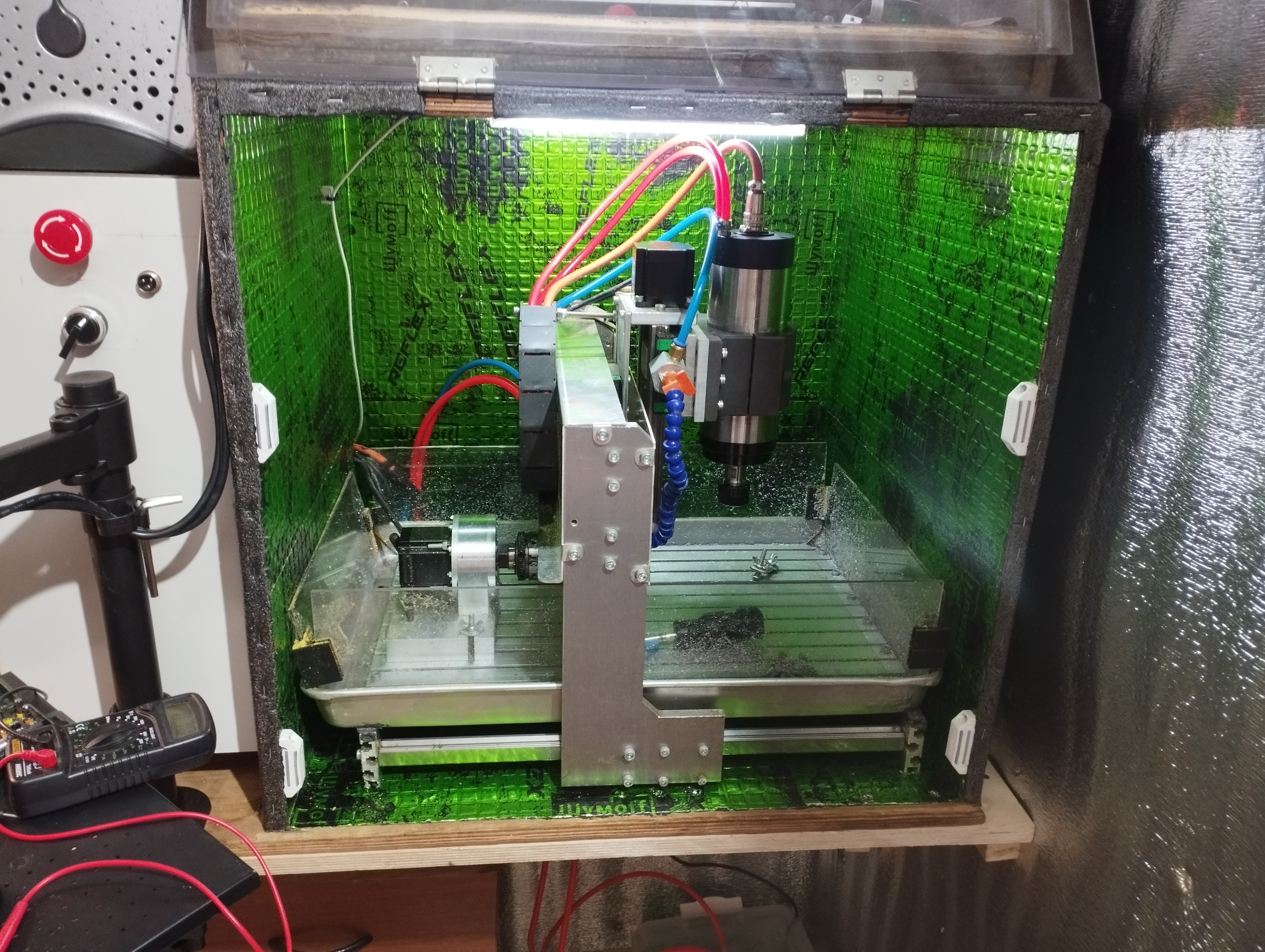 Зелёная шумоизоляция фольгированная, из-за заземления станка, все стенки пол и потолок тоже заземлены и прозваниваются мультиметром, это норма?