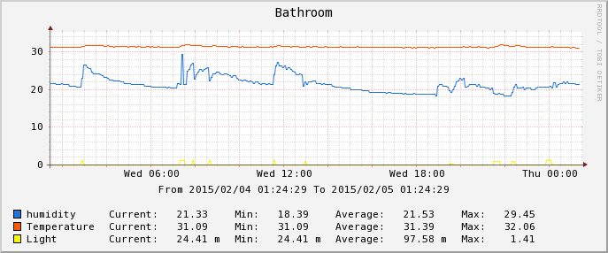 Круто! За RRDtool отдельное спасибо - я хотел базу данных на sqlite делать, но не знал как организовать закольцовывание базы. А тут уже готовое решение, да ещё и под OpenWRT есть. А можно вкратце описать систему? Какие датчики, кто с них данные собирает и в базу пишет? Где графики отображаются?