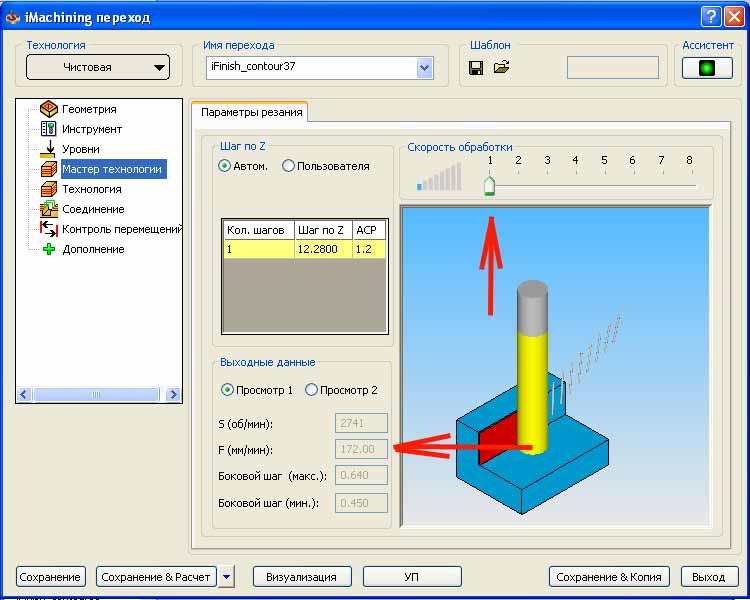 Вот ещё для меня странная штука, при минимальной скорости обработки = 1, F (мм/мин) - 179.