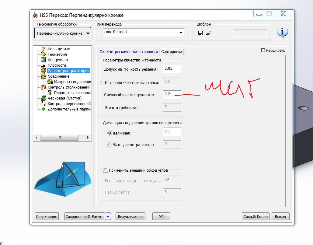 В последнем скрине выделен шаг -ступенька, чем меньше тем точнее и дольше пилит