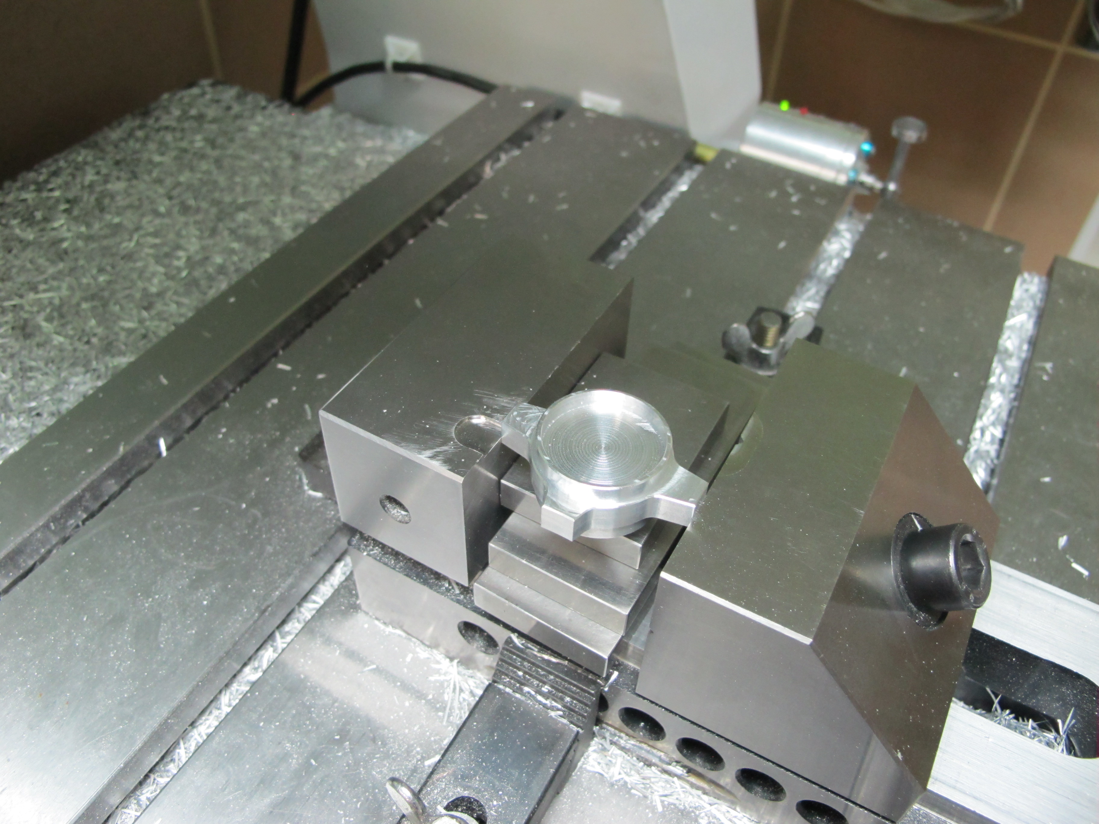 При снятии фасок фреза проходила в 0.2мм над тисками и в примерно в столько же от края детали