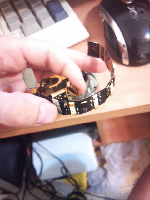 Сделал часы, и какое то время мелкий (10 х 15 мм) литий полимерный аккумулятор стоял прямо на вертушке, я тогда не знал ещё как напряжение на крутящуюся часть передать. Так вот там 8 сверх ярких светодиода, если остановить, то смотреть больно и 1 ИК диод/приёмник для отсчёта нуля круга.