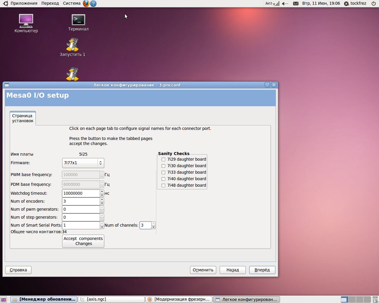 Пробую настроить pncconf. Не поменять кол-во num of step generators (0 показывает, не горит стрелочка)
