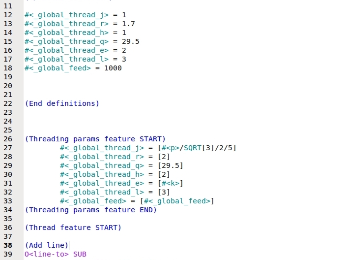 мысль. гдето я, кажется, видел скриптик на питоне для emc, который ничего не считает а просто выводит параметры резьб (или это в солидкаме было...).