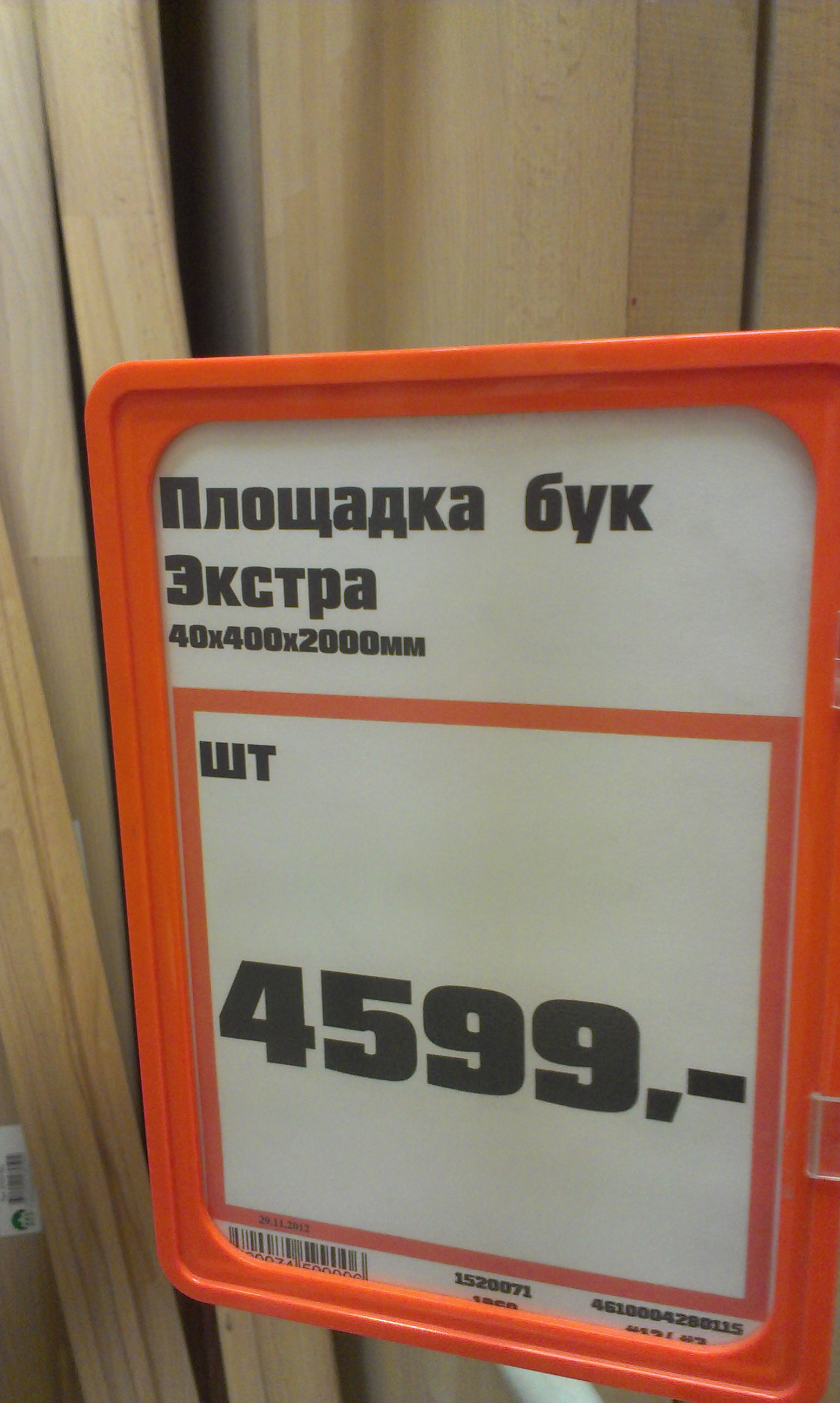 Материал могу купить в OBI или Кастораме, какой-нибудь буковый щит или подступенок. Цен на материал не знаю.
