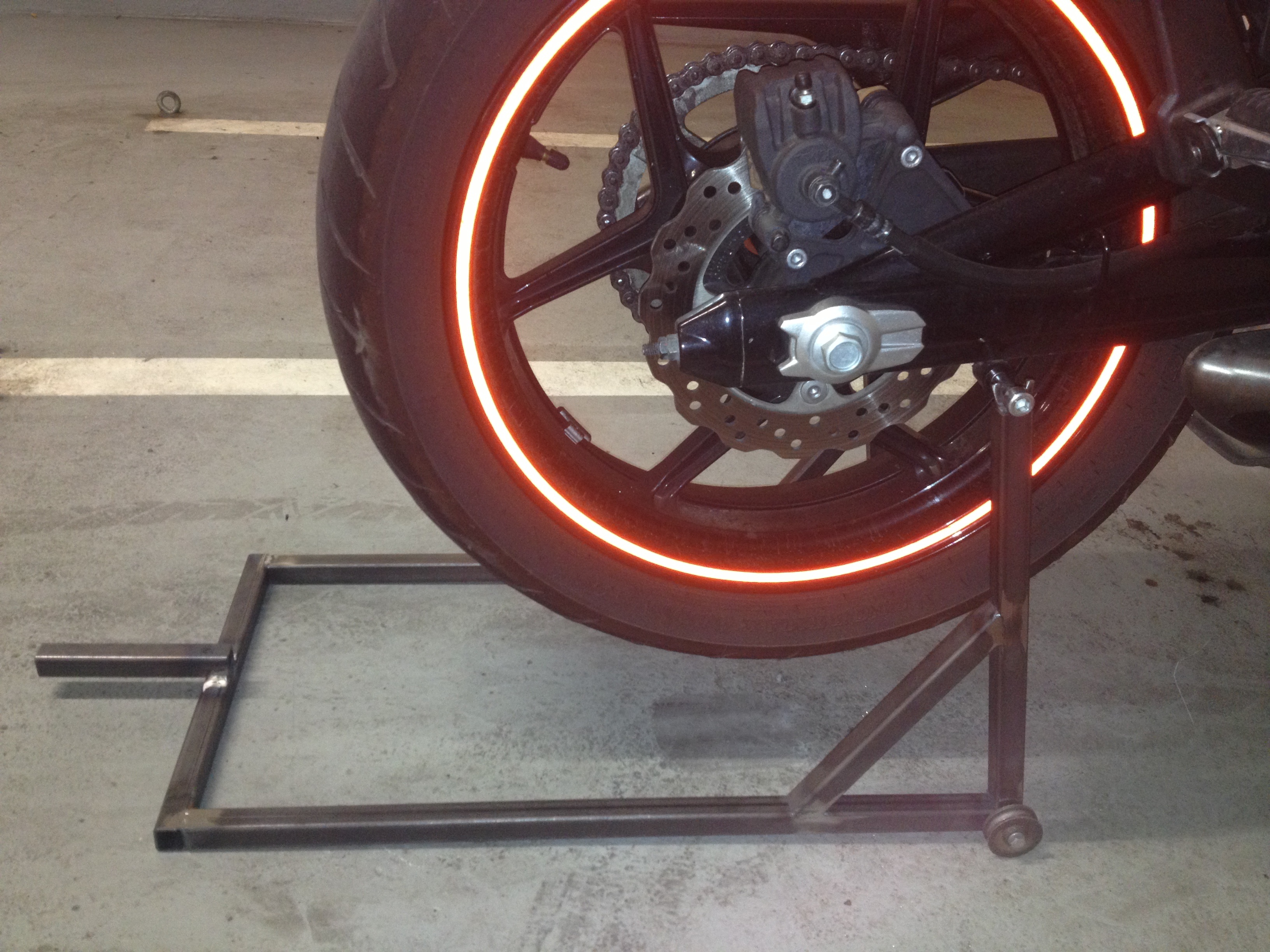 возникла необходимость вывесить заднее колесо на моте, а подката нет. покупать земноводное запретило.