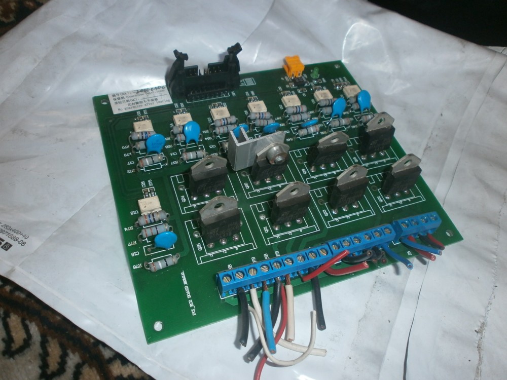 Та что с симисторами работает. 7 каналов работает от питания платы, управляются минусом по пинам разъема и еще один (до конца не разобрался еще) требует подведения своего питания, по крайней мере силовая часть после опторазвязки работает.