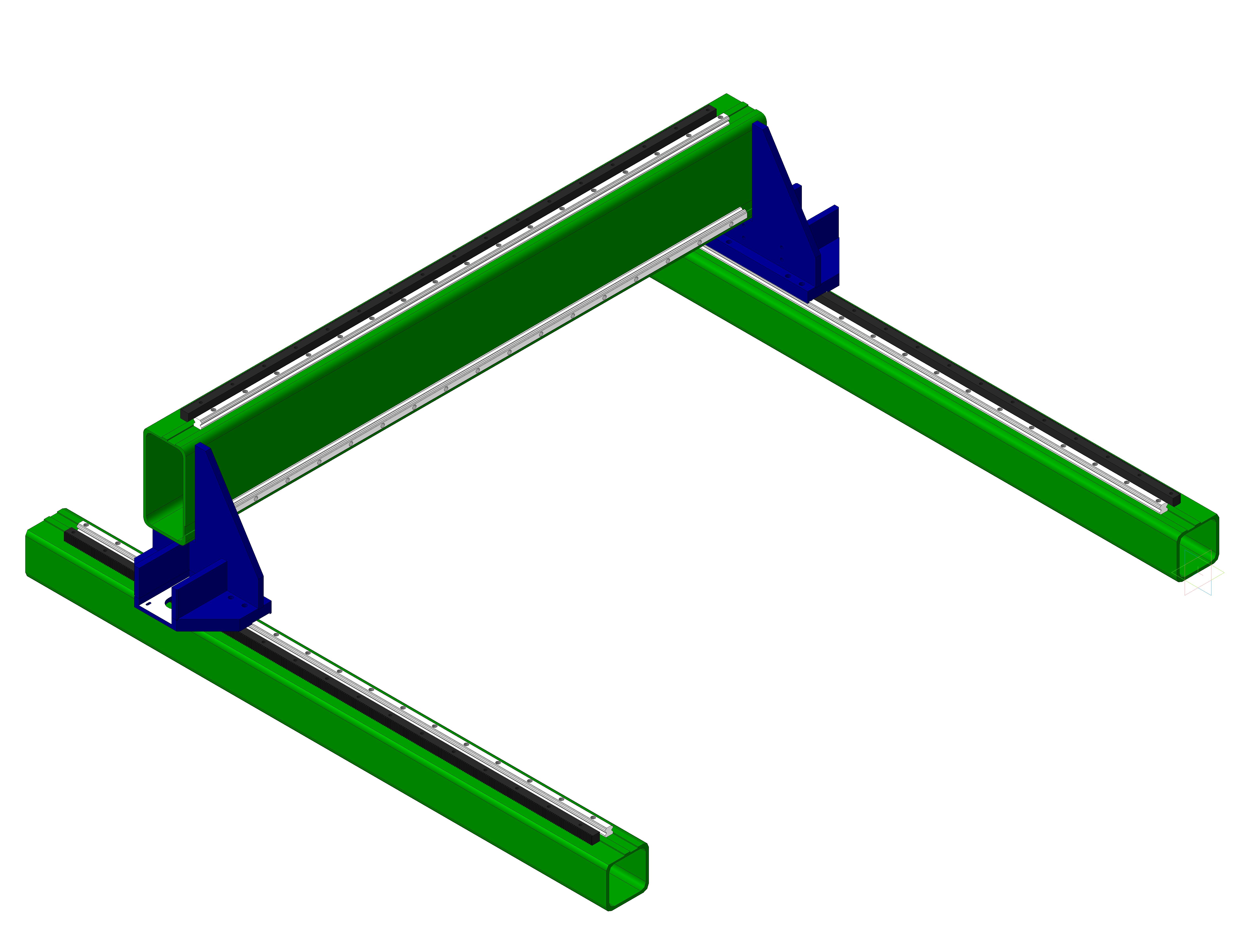 Опора в сборе. Портал на новеньких опорах Забыл про отверстия крепления пластины выбора люфтов шестерня/рейка. Придется что-нить придумывать