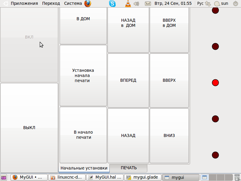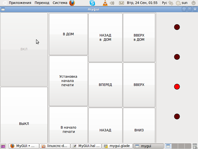 1. При запуске LCNC визуальная панель странно работает - кнопки неактивны, кроме кнопки ВЫКЛ.