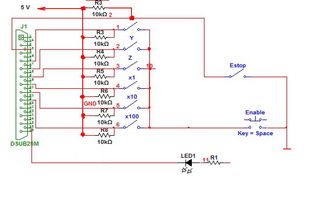 Ну все.E-stop подключен и прописан методом научного тыка, но получилось, все работает. Теперь новая мысля - подцепить на 5 и 6 ось пульта регулировку оборотов шпинделя и скорость подач. Вот тут http://cnc4pc.com/Tech_Docs/guide_for_M ... r_LPT2.htm об этом пишут, но для mach3. На EMC2 наверное тоже можно придумать.