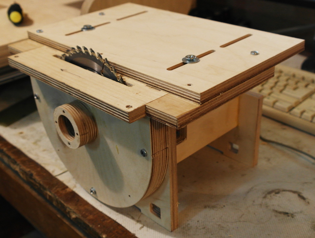 Делал почти тоже самое, только встраиваемое в стол (верстак на даче), потом переделывал кожух для диска, иначе очень быстро забивается опилками.