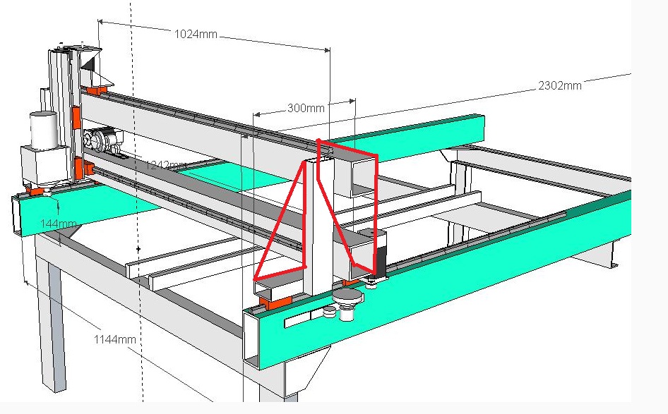 Портал у твоего станка как то хлипковат для такого размера. Если не хочешь менять конструкцию портала тогда добавь косынки Надо постараться проектировать так, чтобы потом можно было построить из наличия материалов, инструментов, опыта, придется сделать всякие приспособы, продумать технологию сборки, выставления, юстировки и т.д. Ну как то так