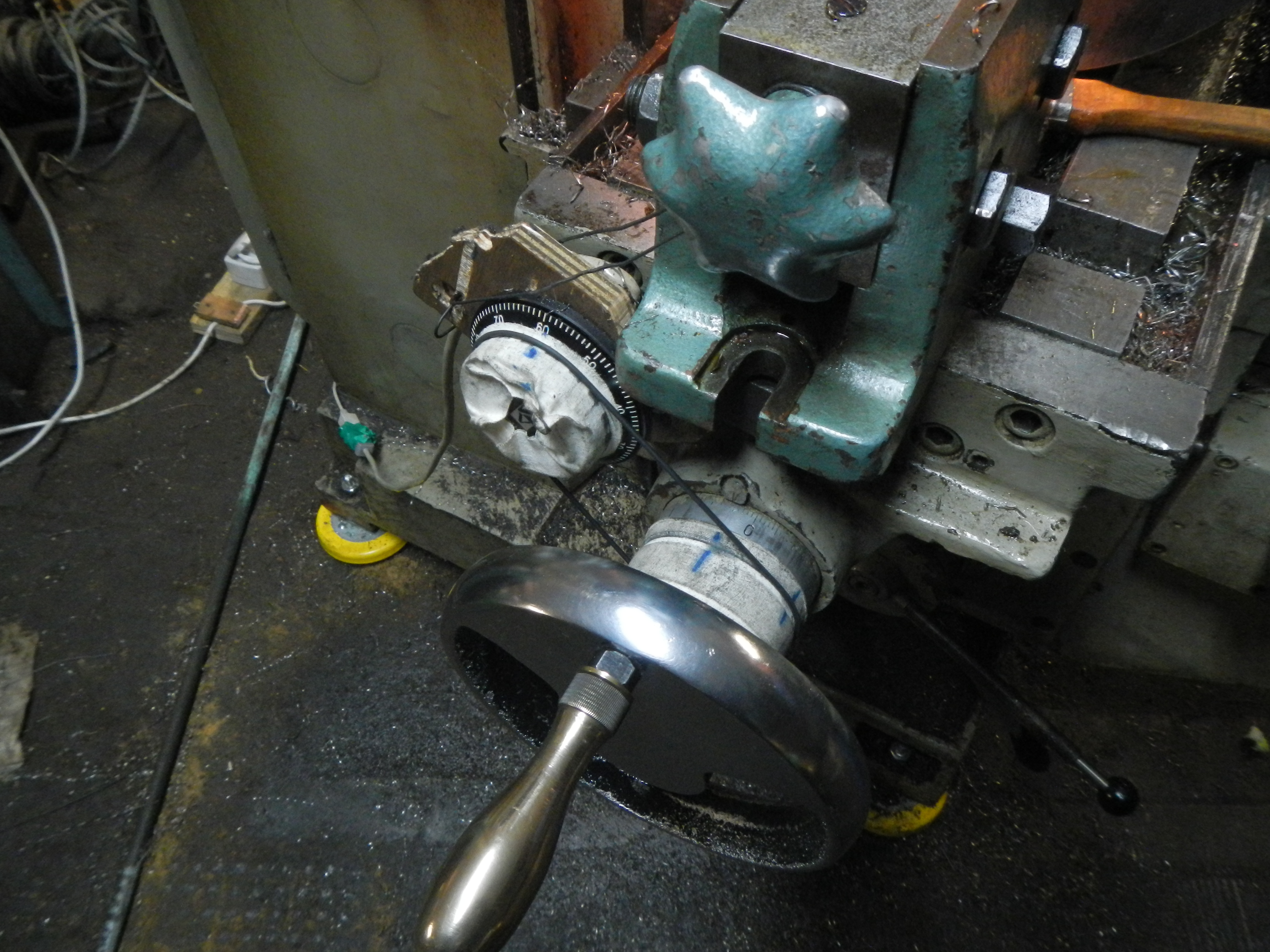 А с обратной стороны стола винт закрыт самой делительной головкой, вся эта конструкция на стол не влезла и центр с головкой свисают по бокам. Головка опирается на крышку винта со второй стороны стола.