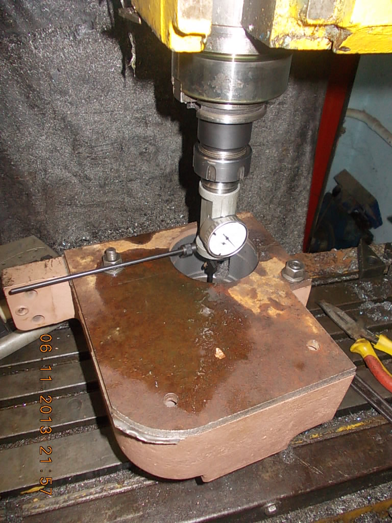 При помощи моего Ренишоу найти центр не получается, так как щуп короткий, пришлось использовать вот такой центроискатель По посадочноуму месту подшипа центрируется и растачиваем