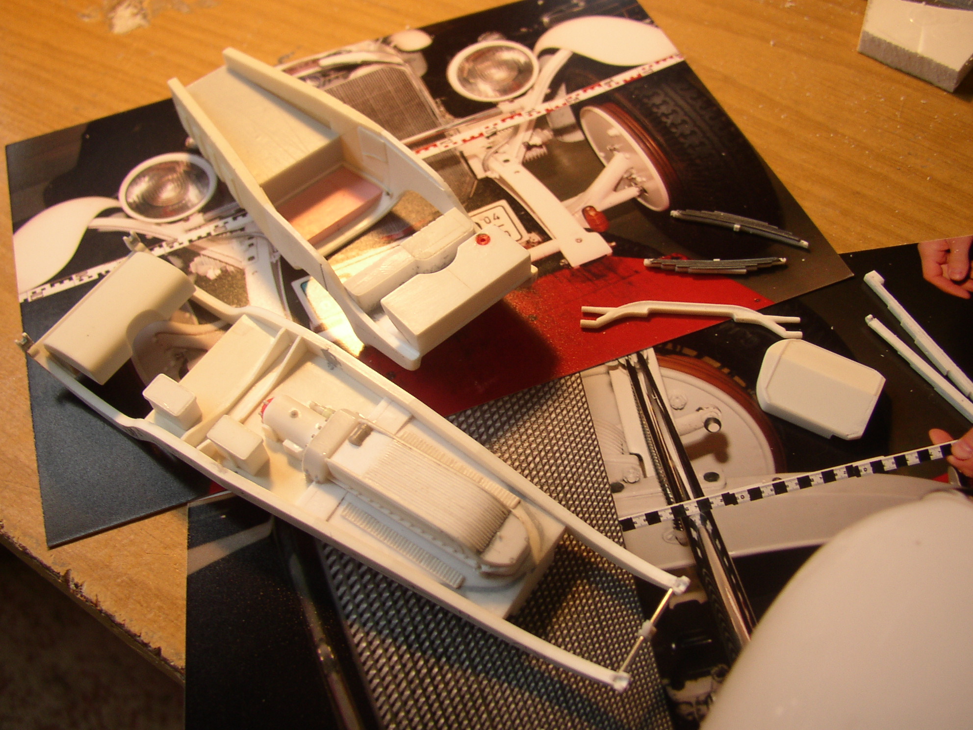 Справа, слева - карманы под задние колёса, потом снаружи и потом внутри.