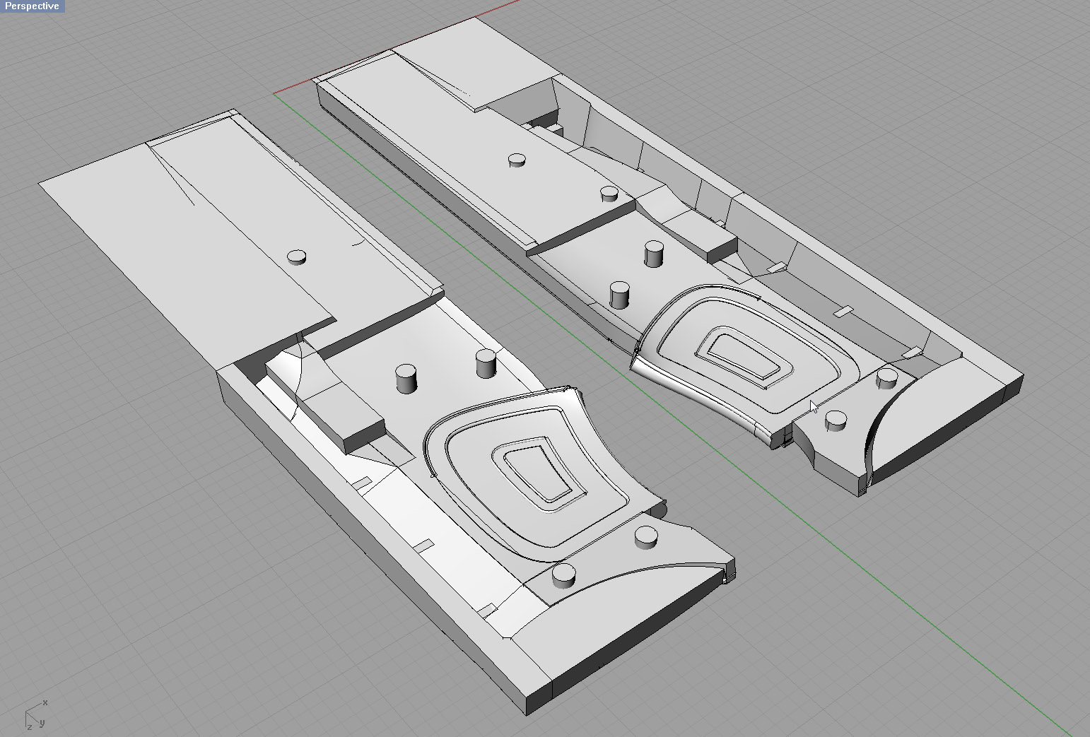 3D рисовалось в Rhinoceros. Фрезеровалось на Ролланде и в его фирменном ПО готовилась управляющая программа.