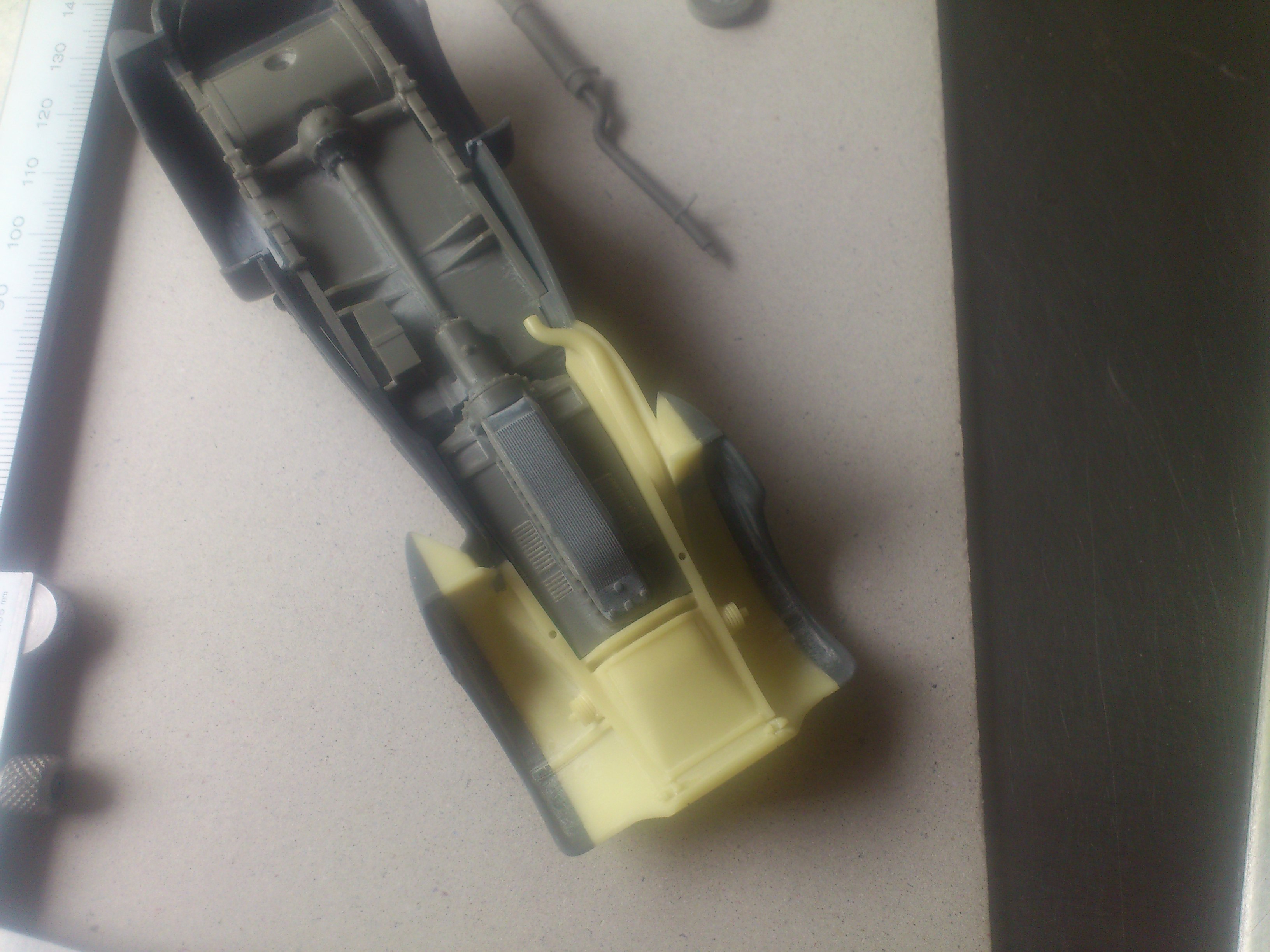 Справа, слева - карманы под задние колёса, потом снаружи и потом внутри.