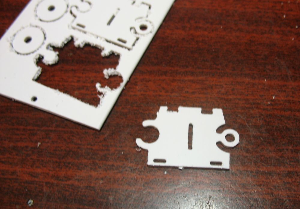 Меня больше интересует вопрос где добыть пластик 1мм толщиной или около того. Прототип вырезан из крышки строительного кабельканала (legrand), вроде ничего, но стружка прилипает к краю детали надо ножичком отшкрябывать, липучая зараза. Как вариант рассматривается строительный пластиковый уголок, распустить и будут 2е пластины. Мож кто еще идеи подкинет где нарыть такой пластик. Вот когда не надо кажется что везде на этот пластик натыкался ..