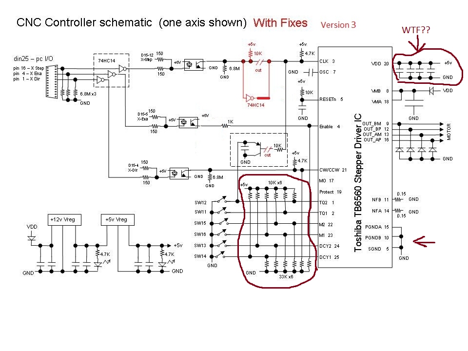 Забавно, что в синих китайских многоканальных "контроллерах" на TB6560 так же стоят PC817 и земля входа объединена с землей платы. Т.е. гальванической развязки, как таковой нет. Но, как ни странно, некоторая польза от оптопар все же есть - без них еще хуже работает.