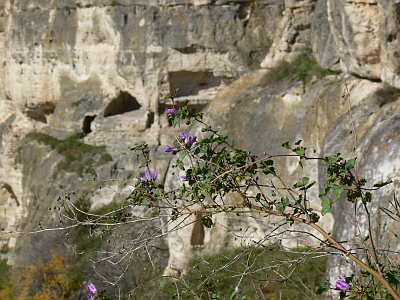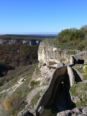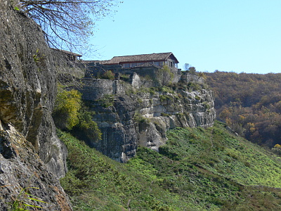 У нас уже сложилась традиция в первый день ехать именно в Бахчисарай. Но не в ханский дворец (одного посещения нам вполне хватило), а Мариампольское ущелье и пещерный город Чуфут-Кале. Место уникальное. Куча разных историй вокруг него. В них можно верить, можно не верить, но именно это ущелье из года в год целенаправленно застраивается Московской епархией... Правда до самого пещерного города пока не добрали.