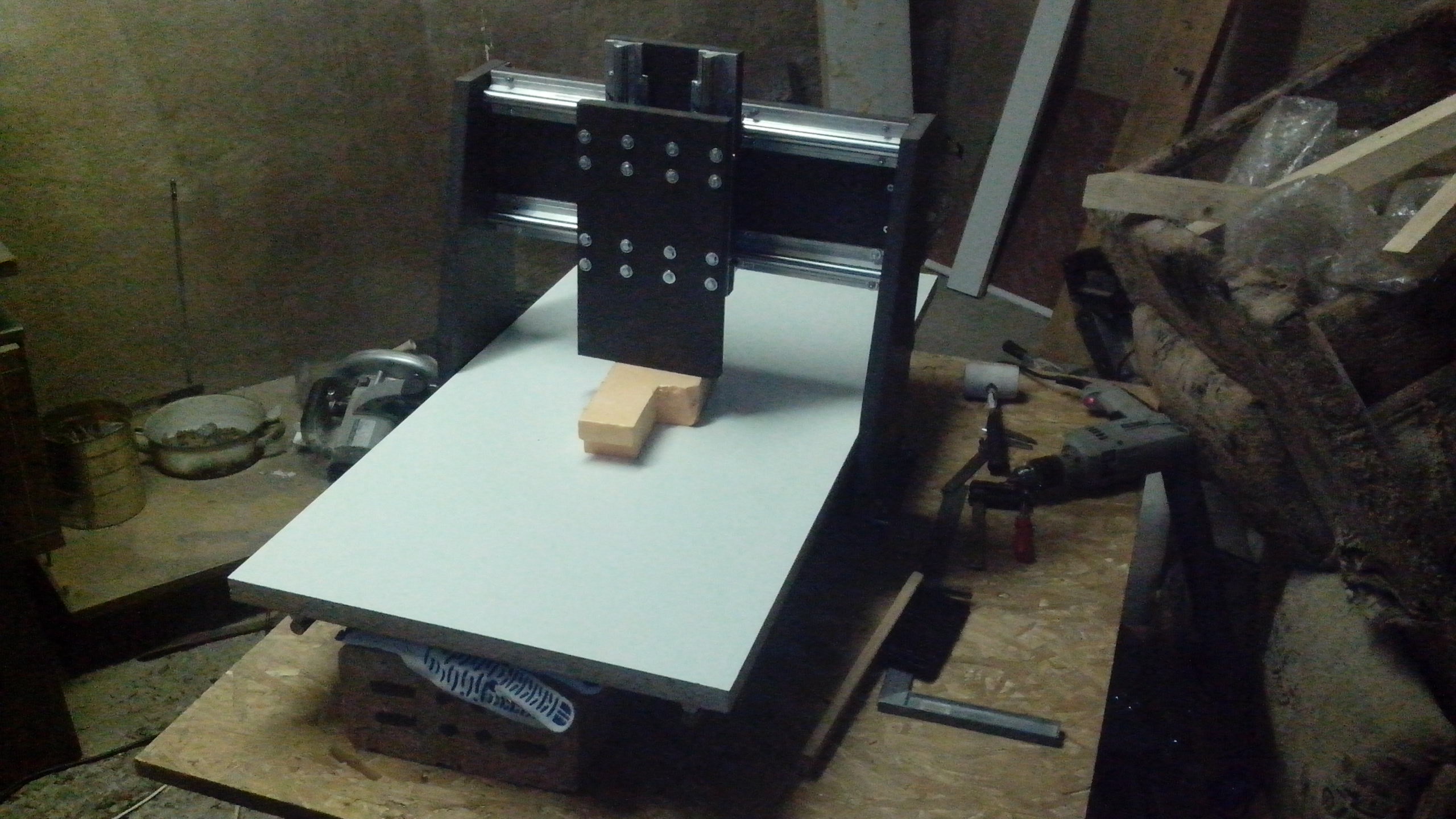 Собрал все вместе. Попробовал прикрутить столешницу из ДСП. Чето гложат меня сомнения. Буду думать.