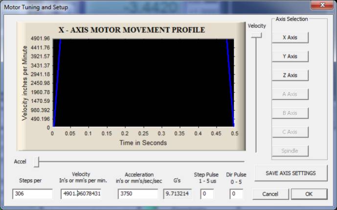 ставлю steps per 200, velocity = 300 но скорость падает до 300 мм в минуту, ставлю velocity 7500, скорость фактическая поднимается, но не 7500 мм в минуту а те же 30 об в минуту это гдето 400 мм в мин, может перезагрузится или где-то галка стоит в секретном месте?